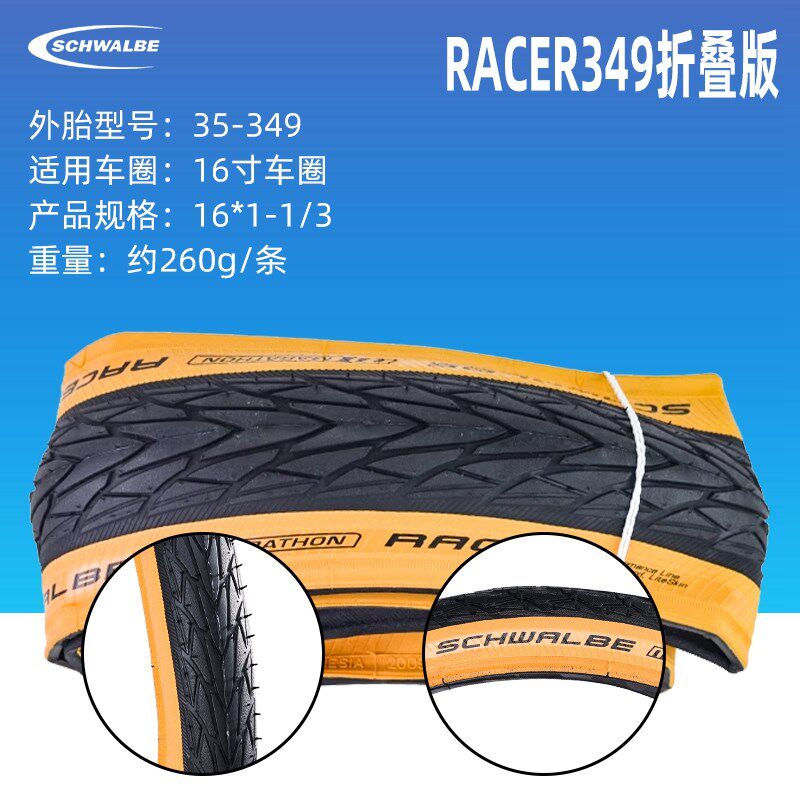 📚 Schwalbe世文349自行车轮胎内外胎16寸*1.35 ONE RACER折叠防刺胎