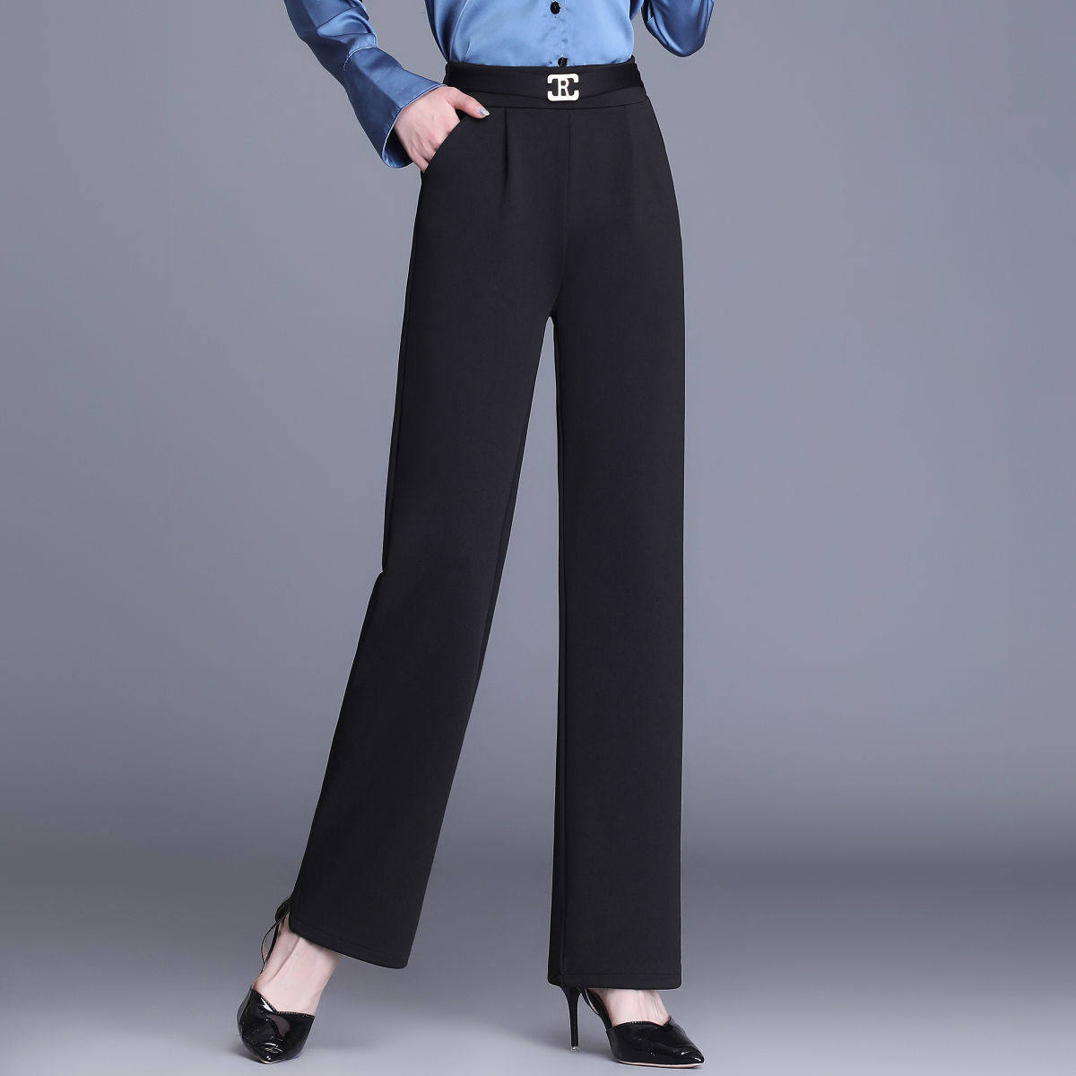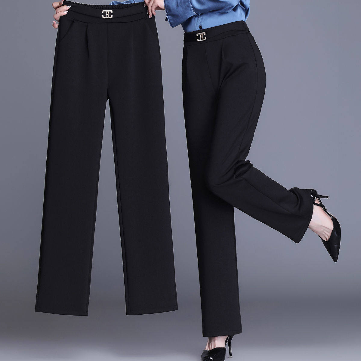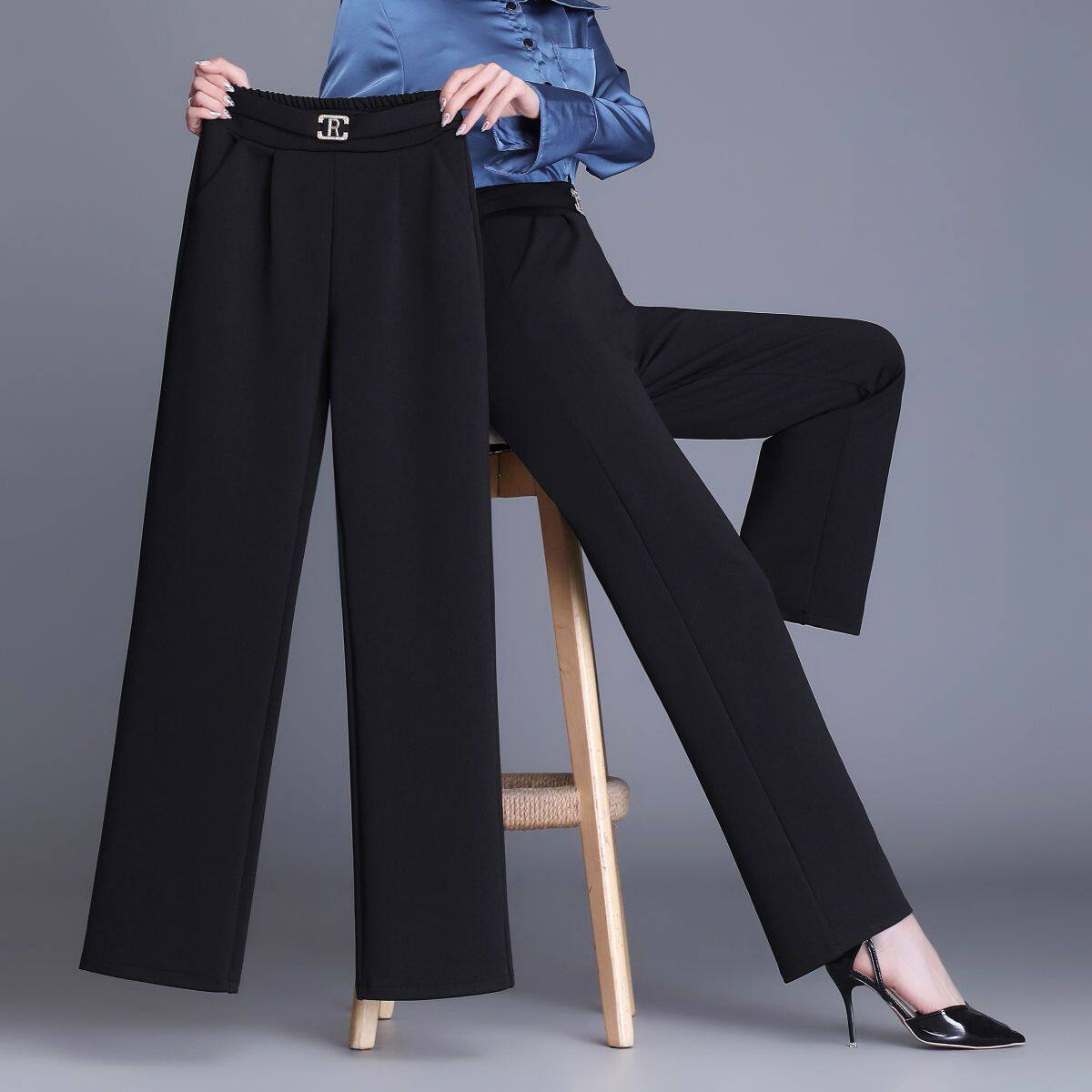 📚 九分/长裤春秋新款西装裤女垂感直筒裤高腰弹力显瘦百搭阔腿裤子