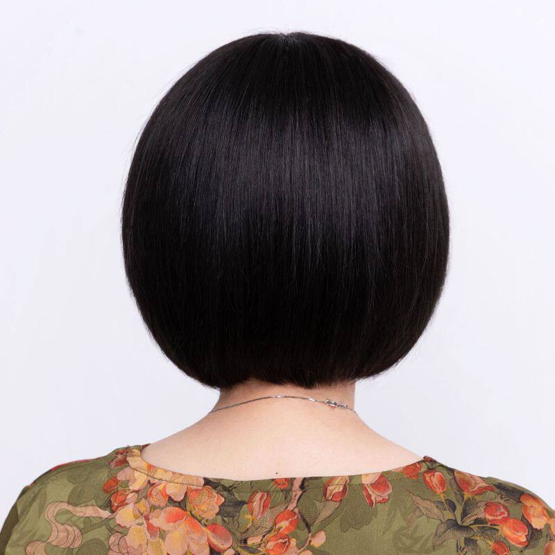 📚 中老年假发真发全真人发50岁妈妈化疗光头轻薄款波波头黑色全头套