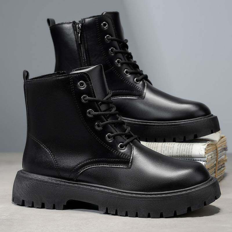 📚 玮伦鞋业新款马丁潮秋季厨师男鞋百搭高帮皮靴黑色休闲皮鞋运动鞋