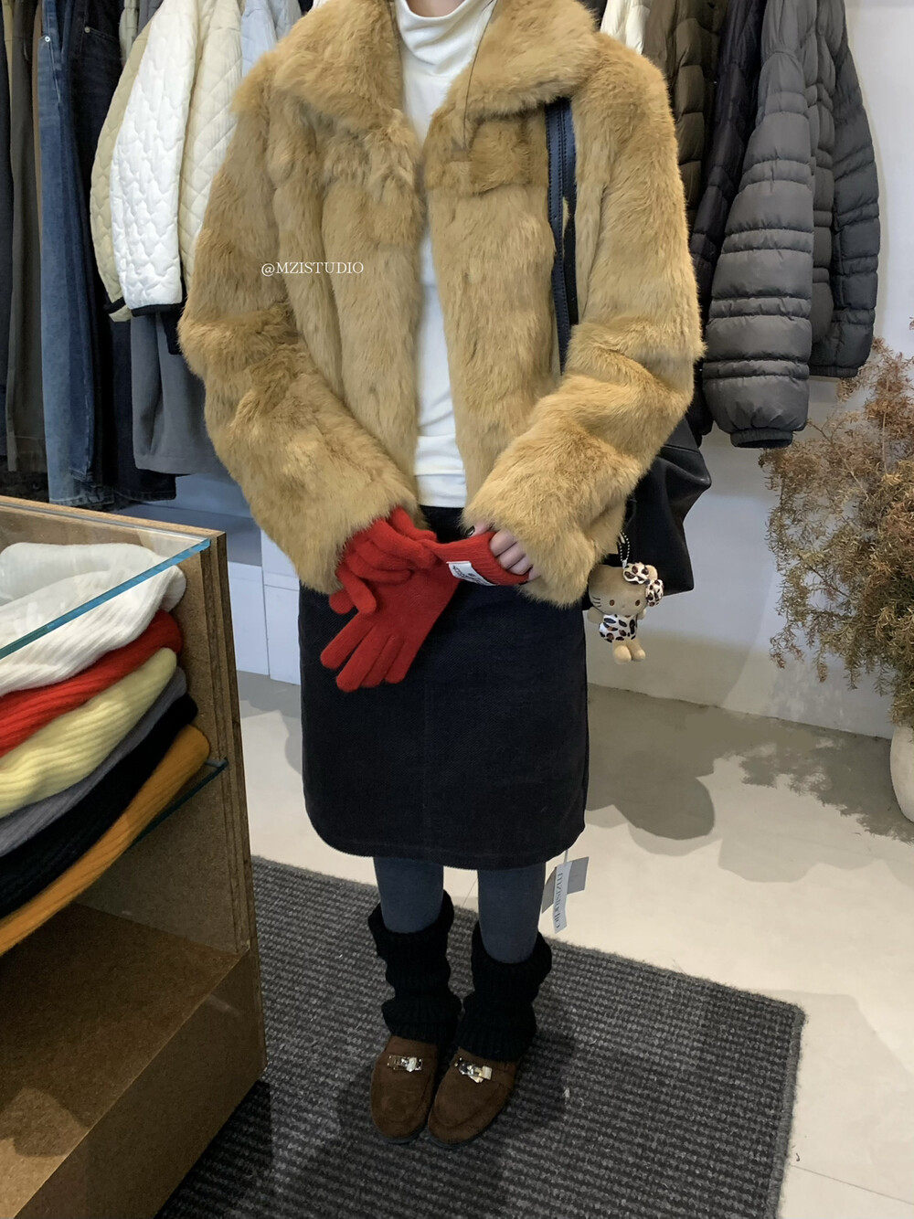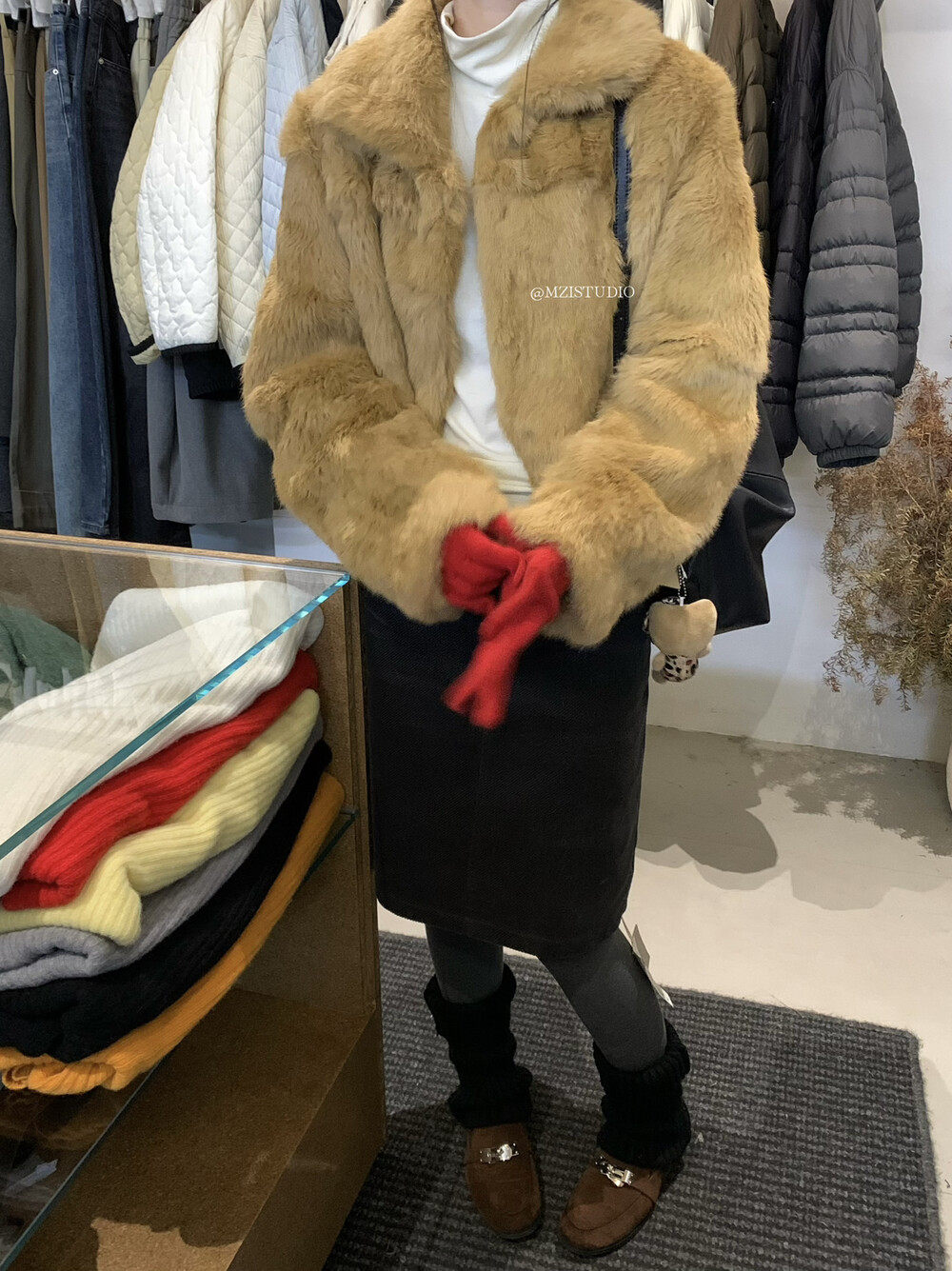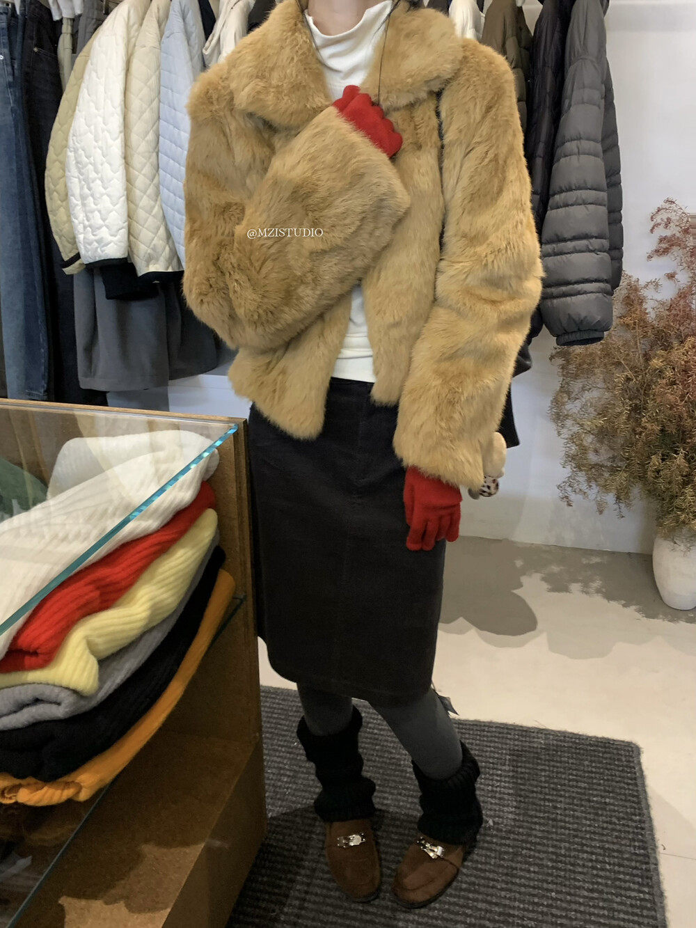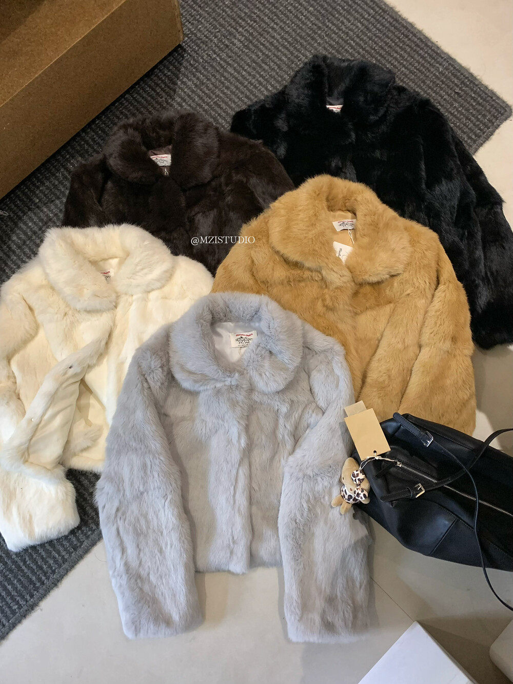 📚 MZI STUDIO冬新款韩系百搭保暖翻领短款兔毛外套毛毛上衣12858