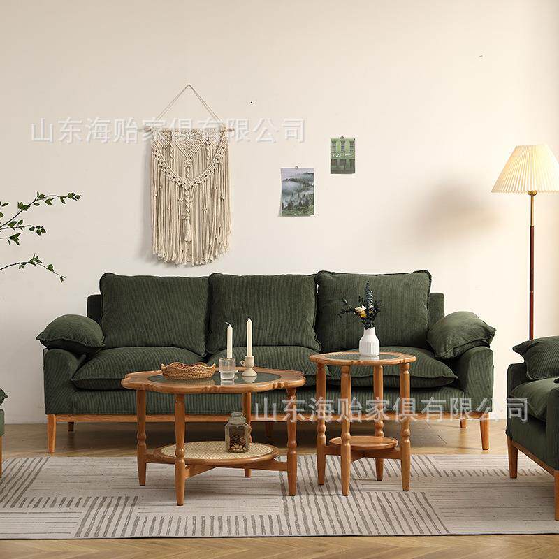 📚 北欧樱桃木布艺沙发简约客厅小户型家具日式复古三人位沙发可拆洗