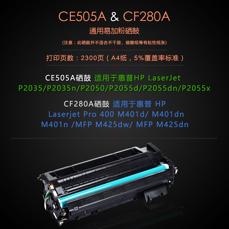 📚 适用惠普M425dw打印机硒鼓P2050碳粉盒HP M401d激光一体机墨盒M401dn粉盒P2055 P2055dn墨粉P2035n CF280碳粉