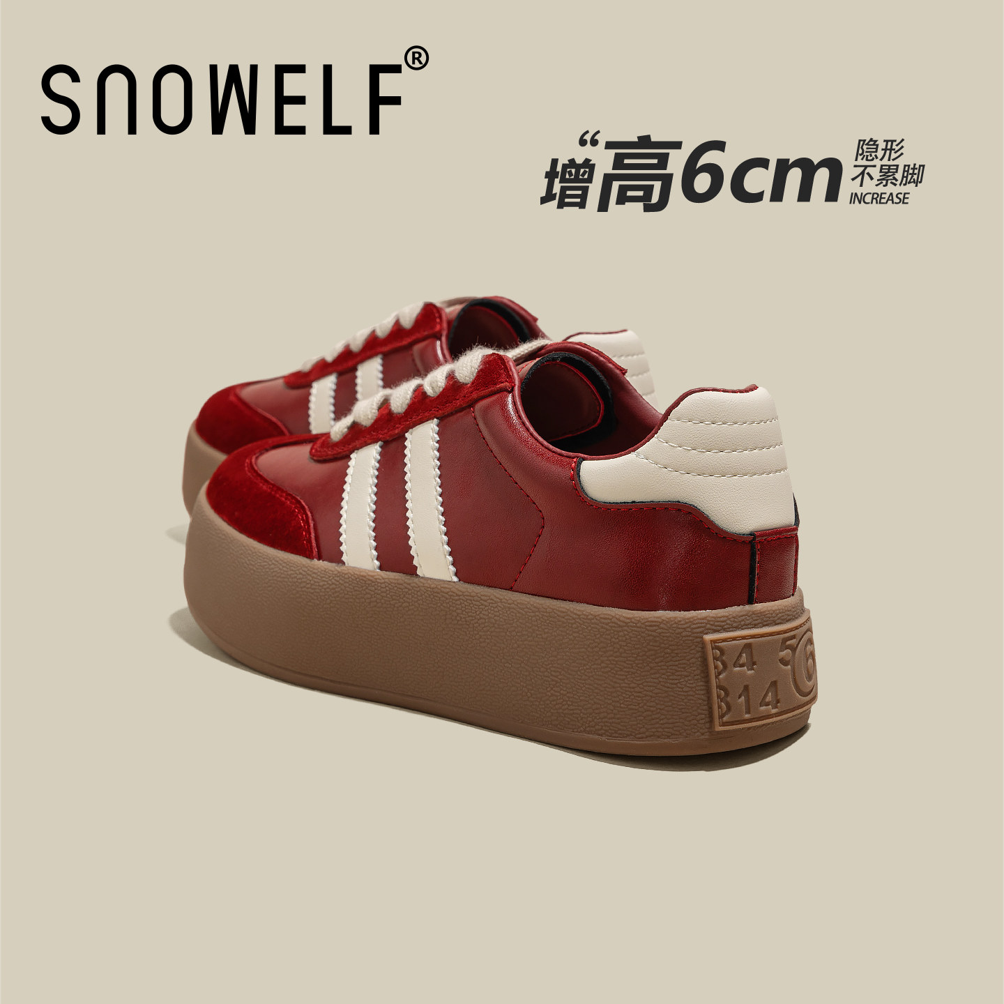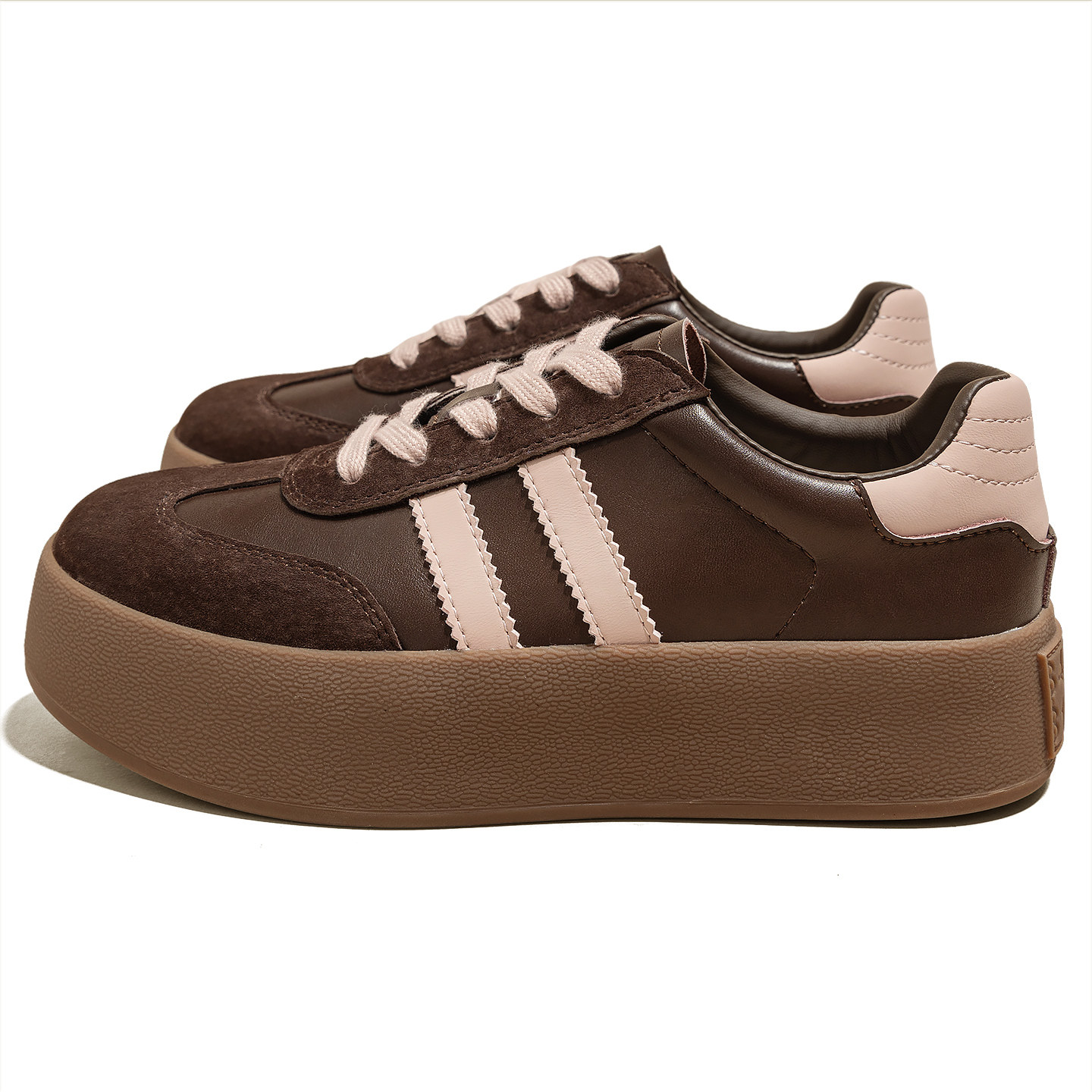 📚 6CM厚底德训鞋女2026新款春季鞋子加绒内增高美拉德棕色休闲板鞋