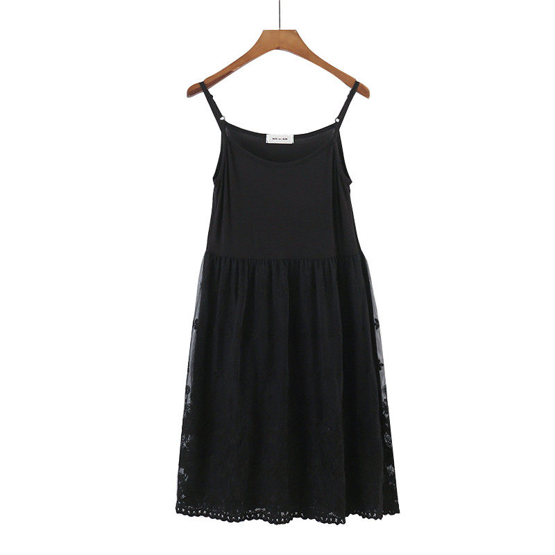 📚 蕾丝春季花朵刺绣内搭纱裙宽松大码黑色打底网纱裙
