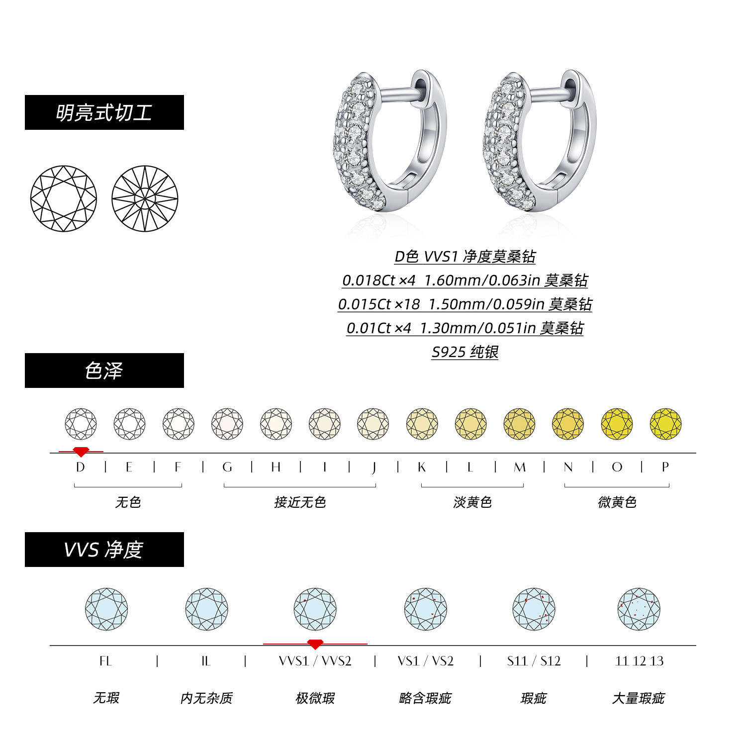 📚 MODIAN摩典VVS1净度莫桑钻耳环女S925纯银轻奢碎钻高级感排钻耳圈