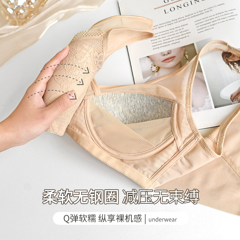 📚 大胸显小蕾丝内衣女收副乳聚拢上托防下垂大码罩杯无钢圈薄款文胸