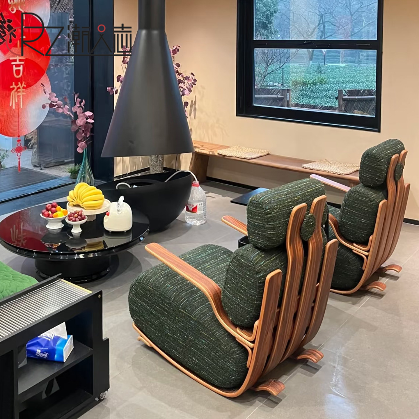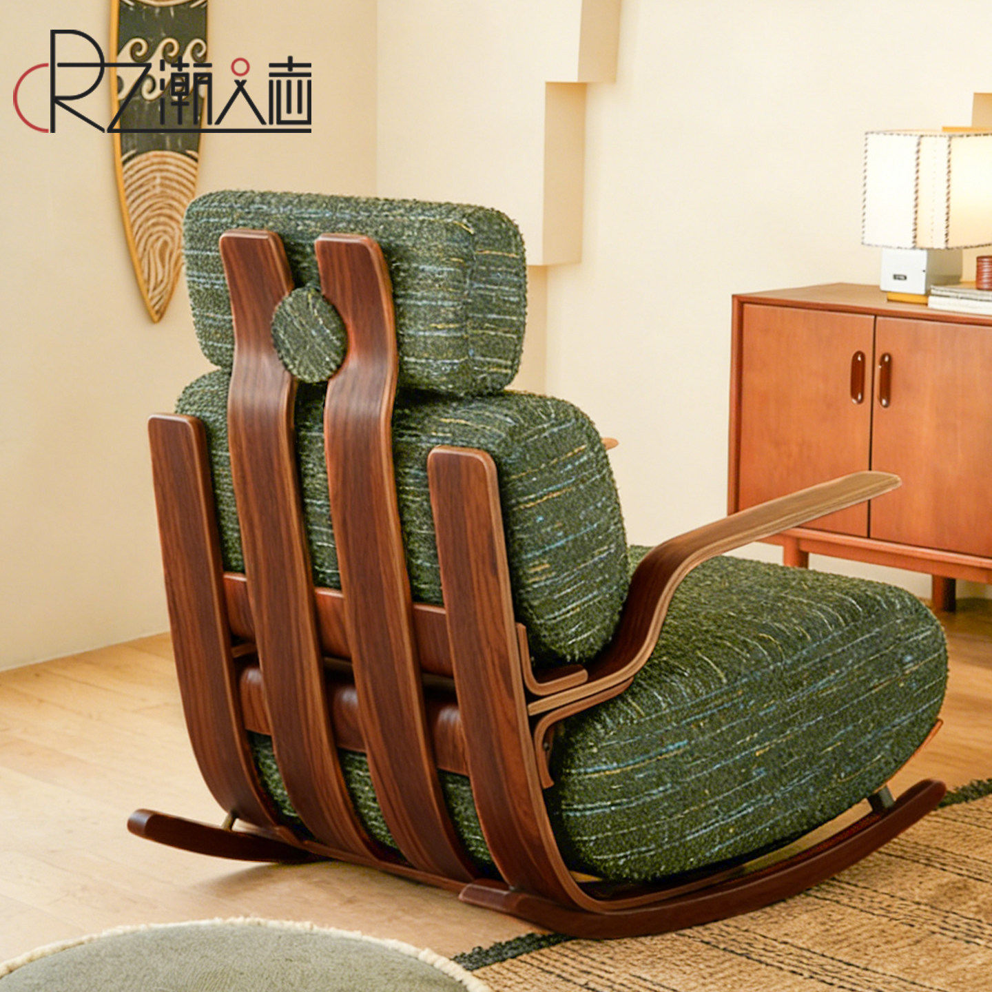 📚 中古慢摇沙发椅复古家用简约单人椅高级懒人休闲椅阳台卧室摇摇椅