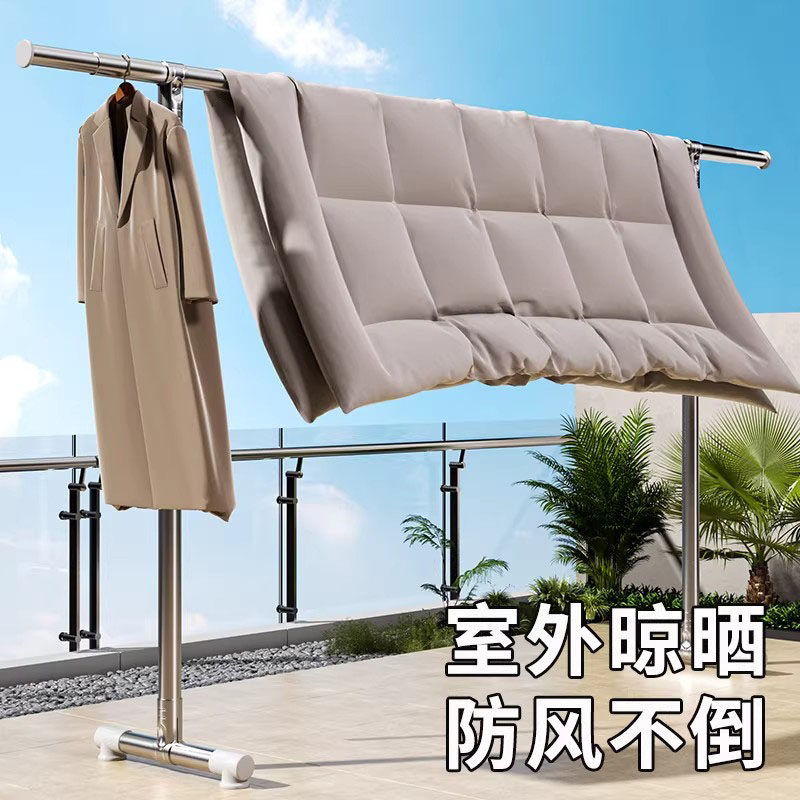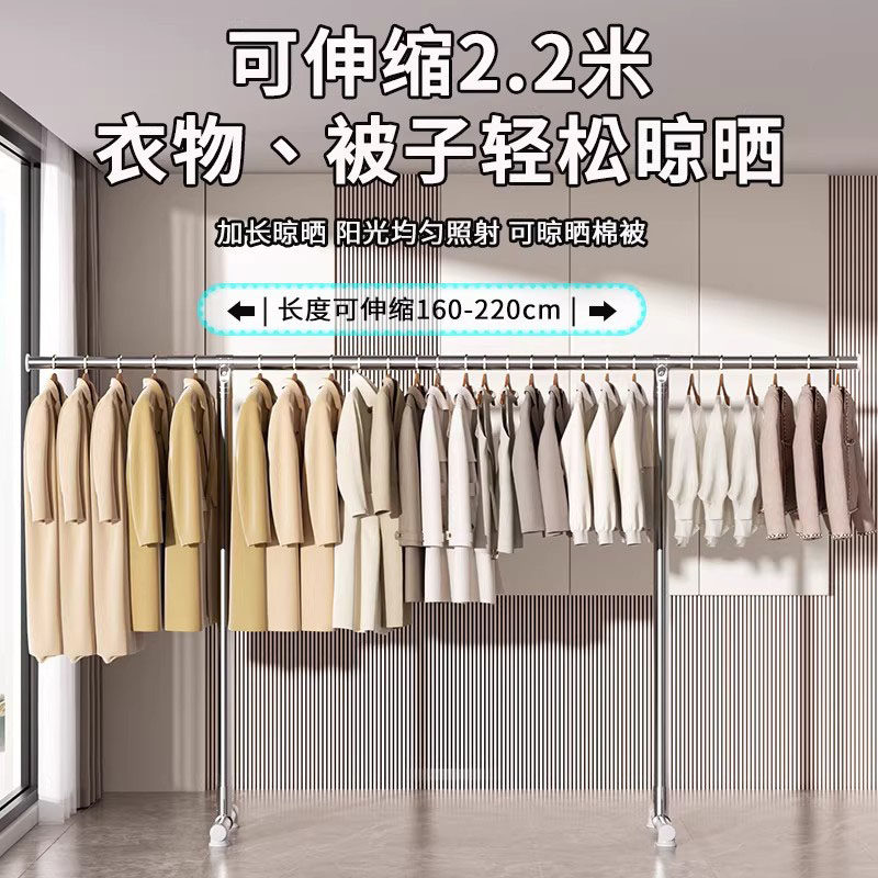 📚 德国不锈钢晾衣架落地伸缩挂衣服简易阳台晒被子神器室内晾衣杆式