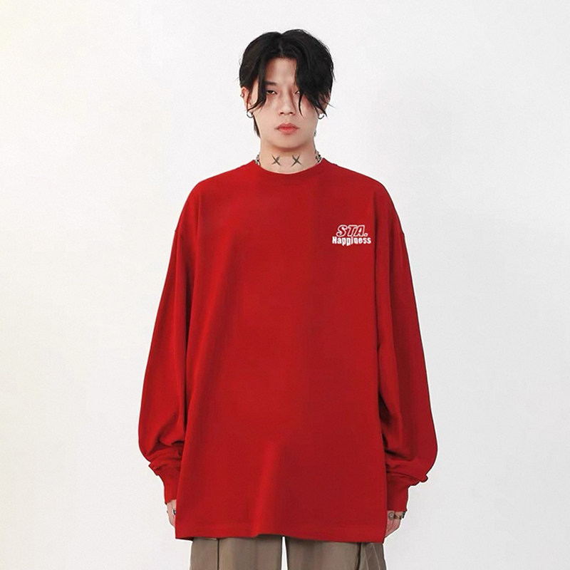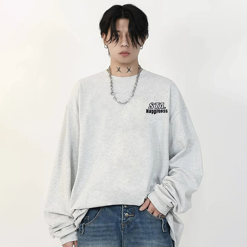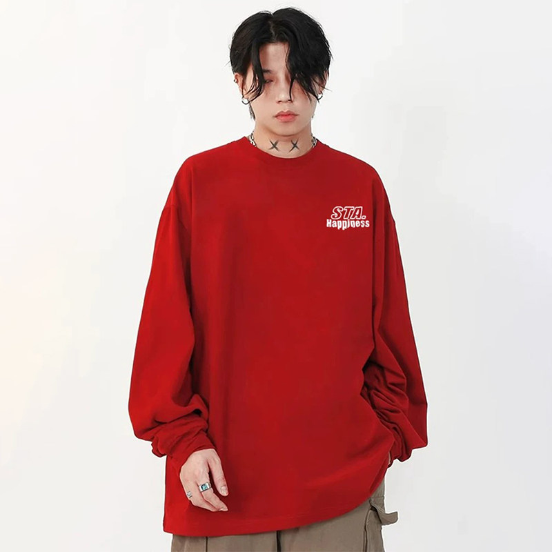 📚 STA原创春秋季国潮牌幸福字母印花宽松圆领长袖T恤男女装上衣t恤