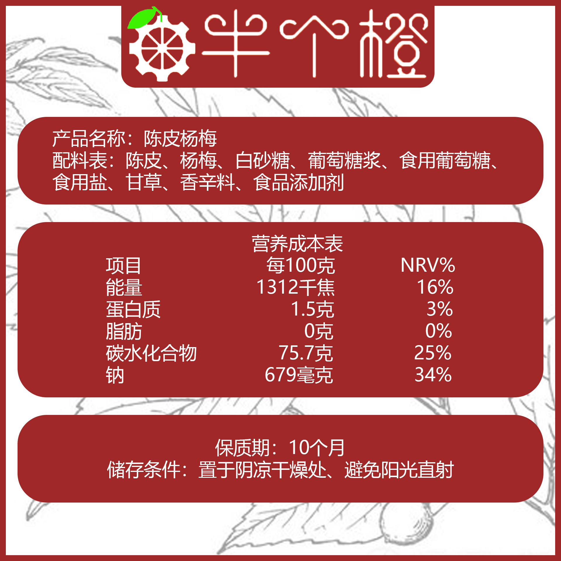 📚 半个橙陈皮杨梅罐装办公室茶伴侣孕妇下午茶盐津果脯福建特产360g