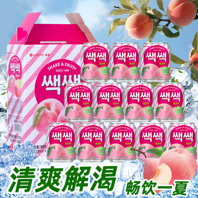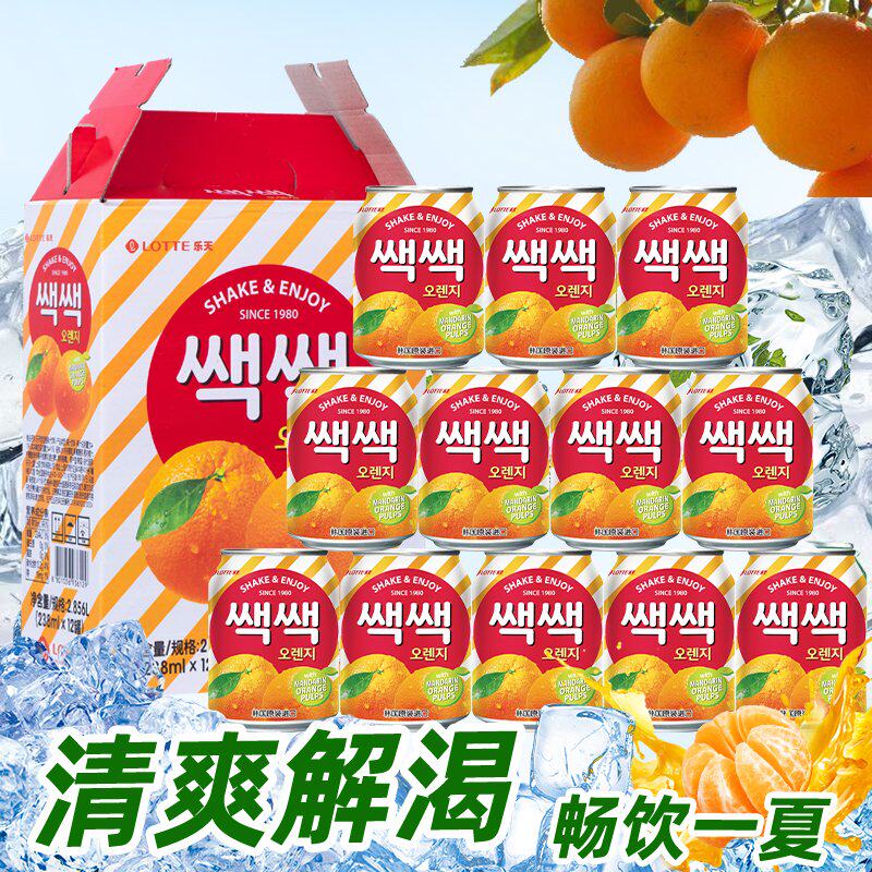 📚 韩国原装进口乐天LOTTE饮料葡萄果肉芒果网红整箱果味饮品罐装