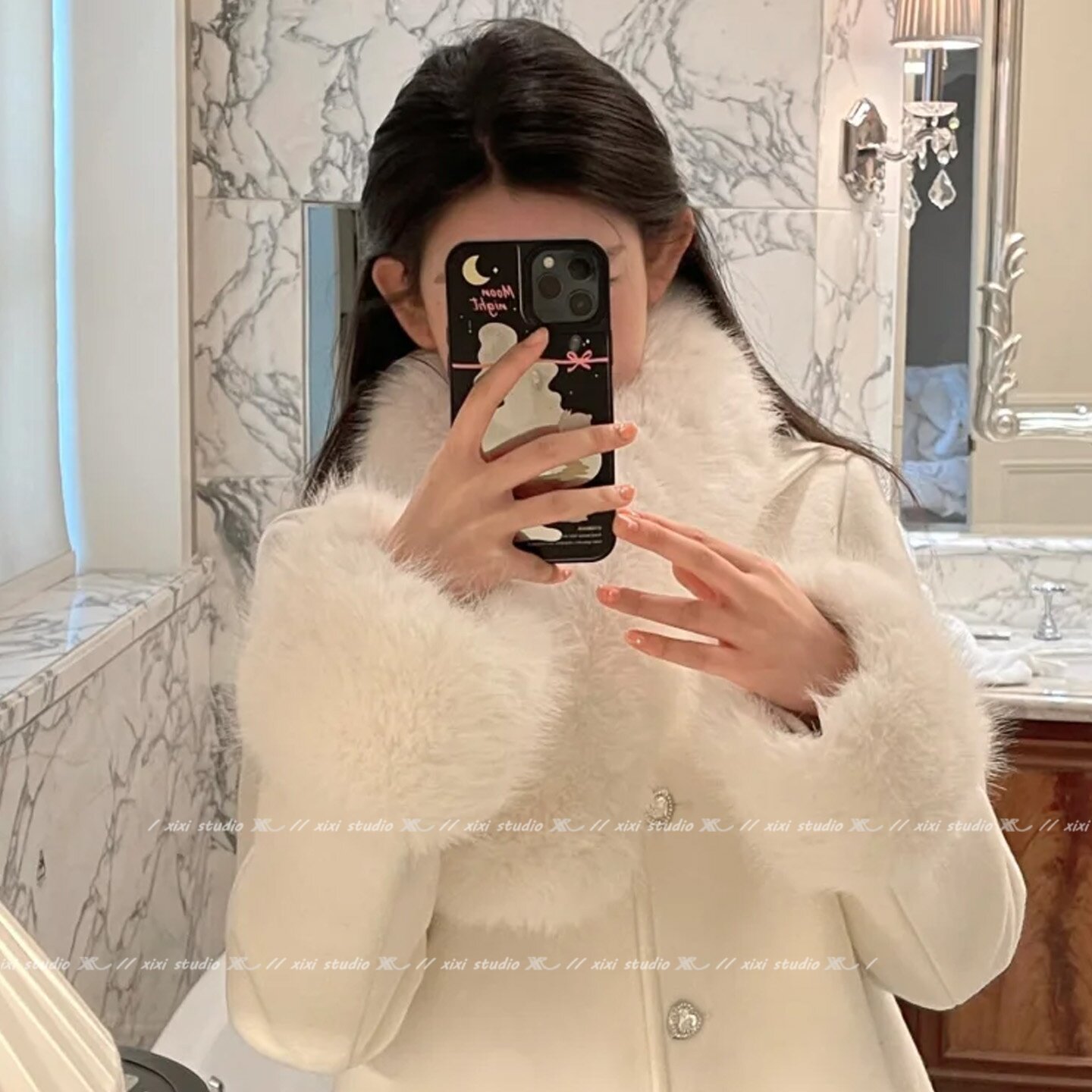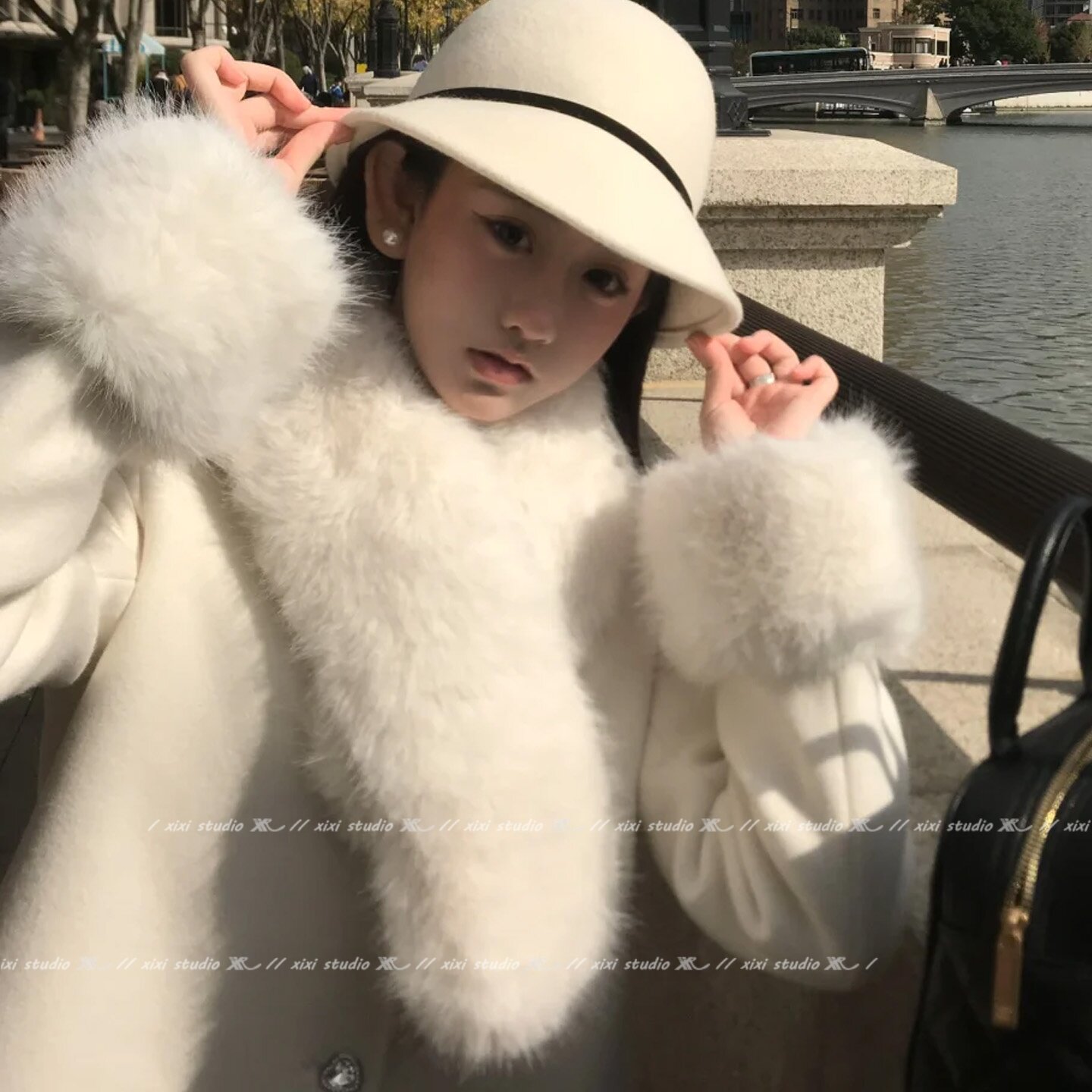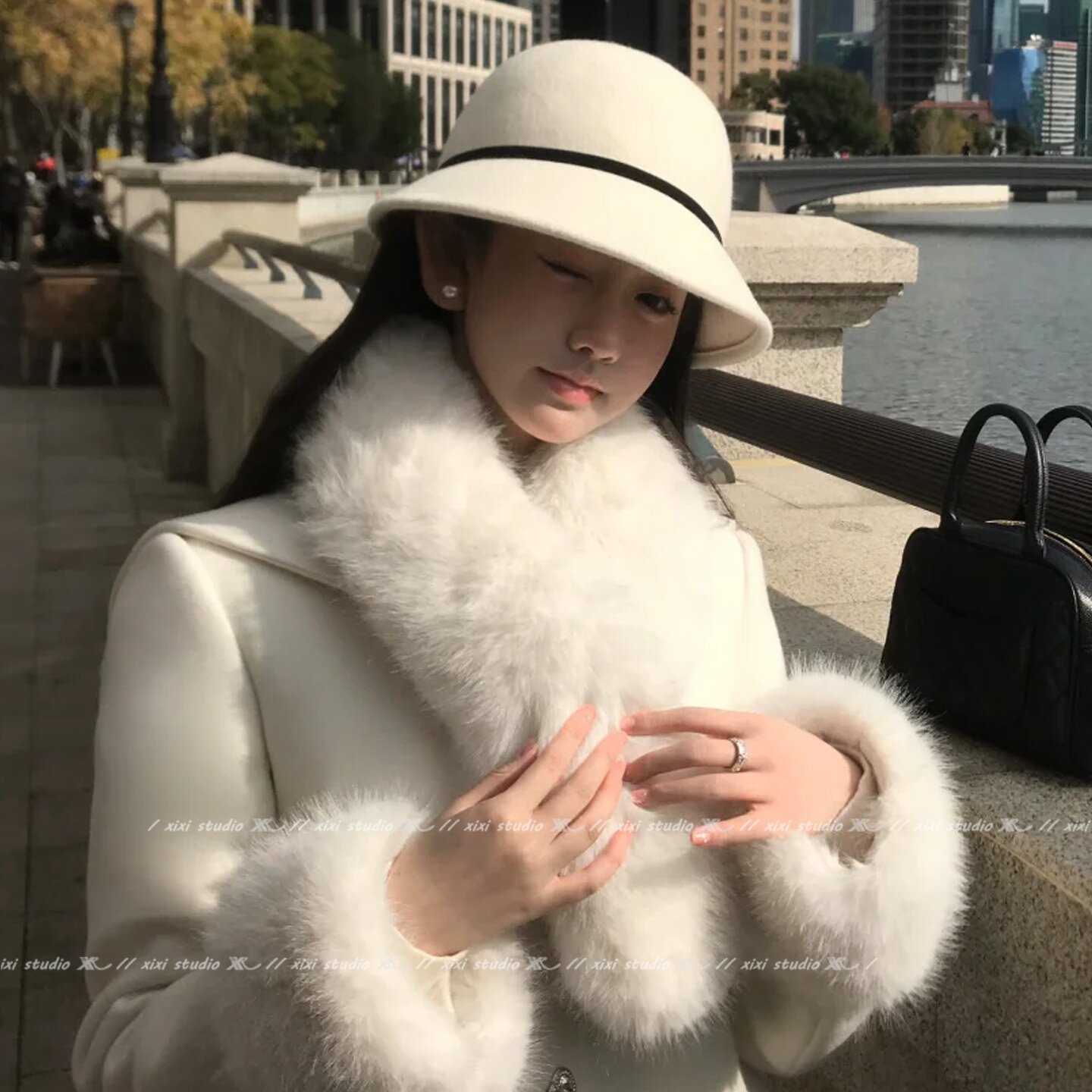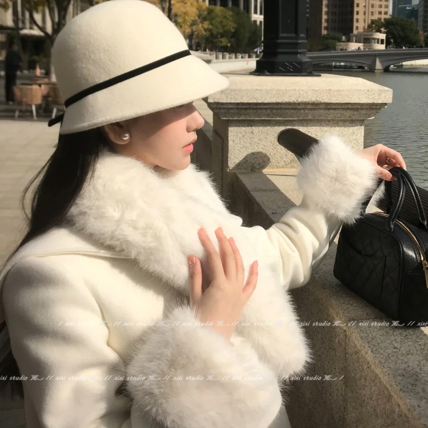 📚 留洋大小姐乳白色仿皮草围脖法式小香风保暖毛领护颈小巧围巾新品