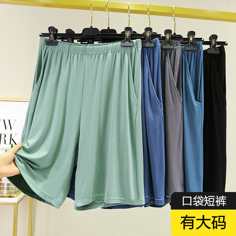 📚 睡裤男士夏季莫代尔大码宽松居家短裤薄款外穿加肥加大纯色五分裤