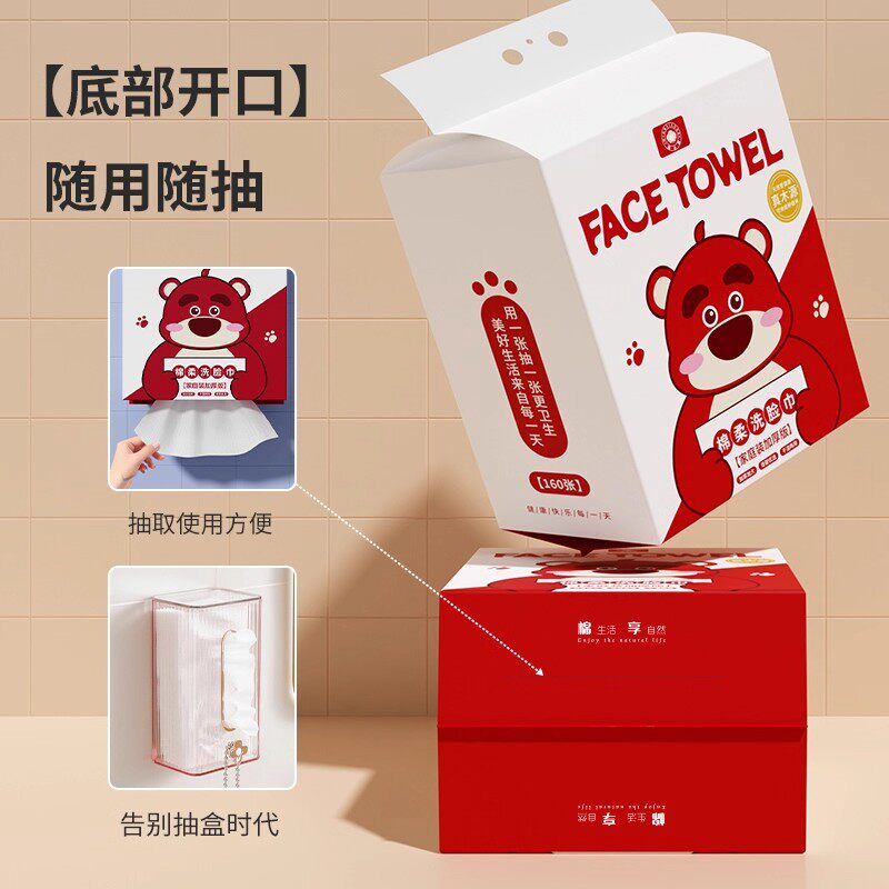 📚 樱桃熊官方正品一次性洗脸巾棉柔巾600g悬挂抽取式干湿两用家庭装