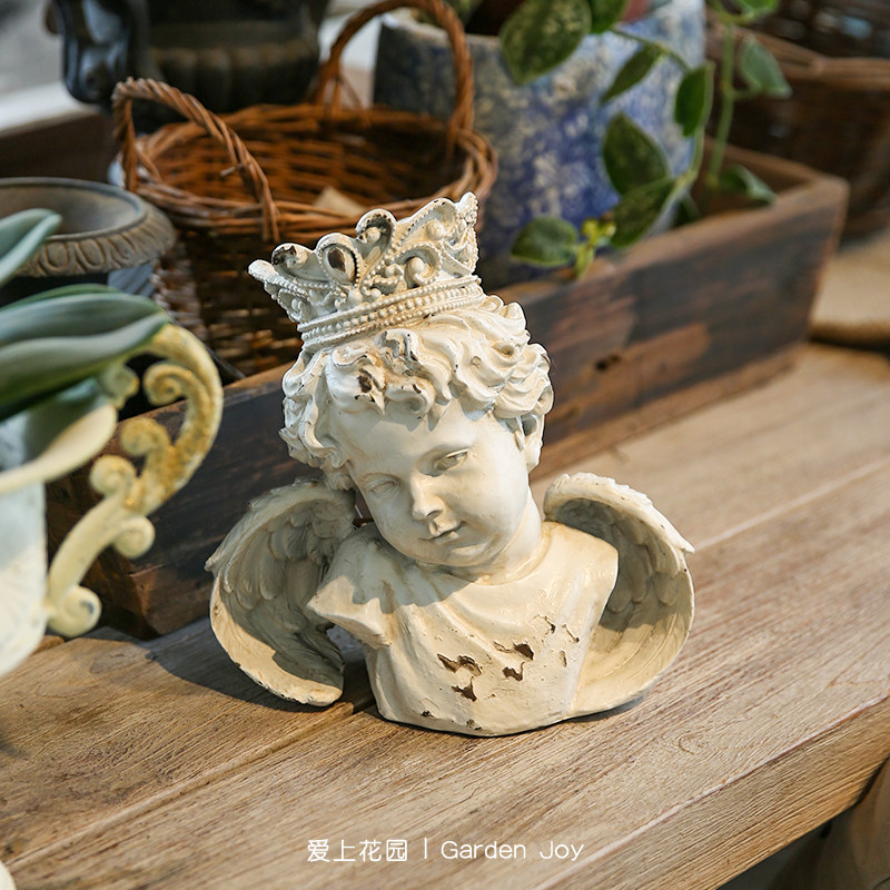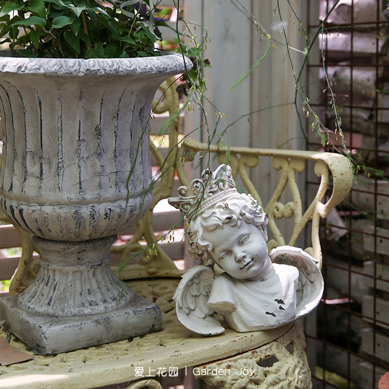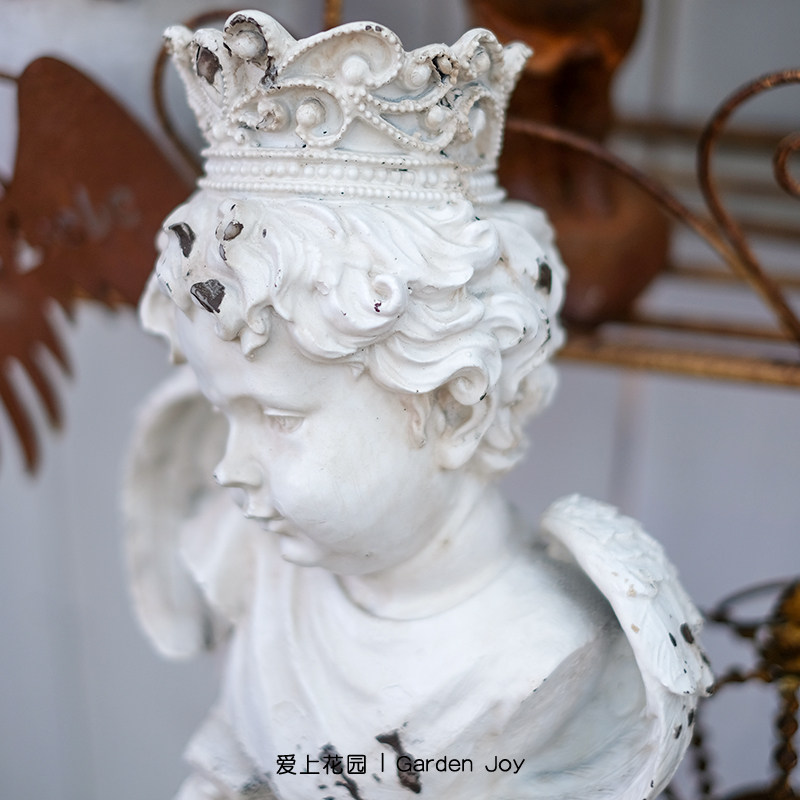 📚 爱上花园丨欧式复古 园艺庭院摆件装饰 白色做旧带皇冠的小天使男