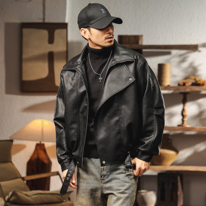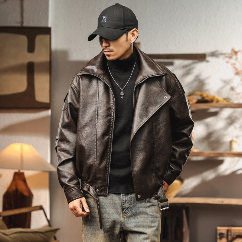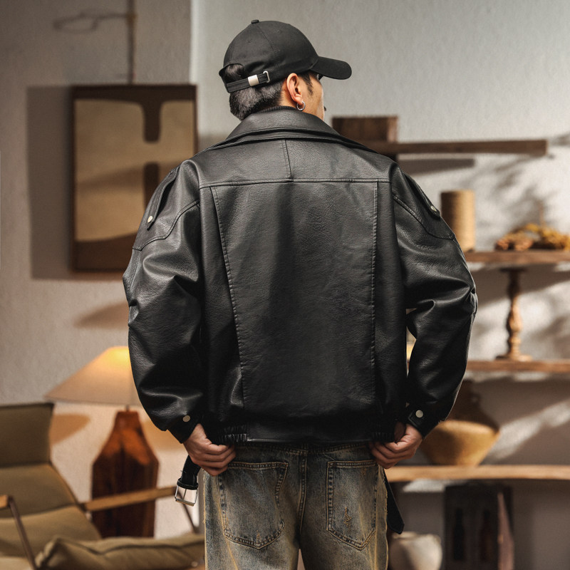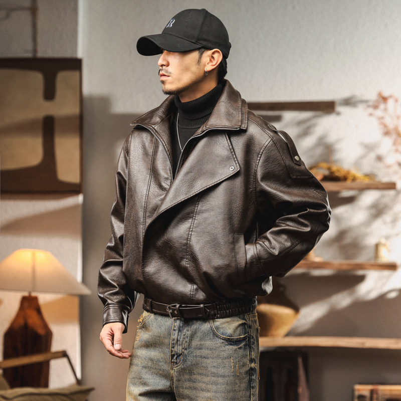 📚 美式复古高端机车加绒PU皮衣外套男2025冬季加厚宽松痞帅飞行夹克