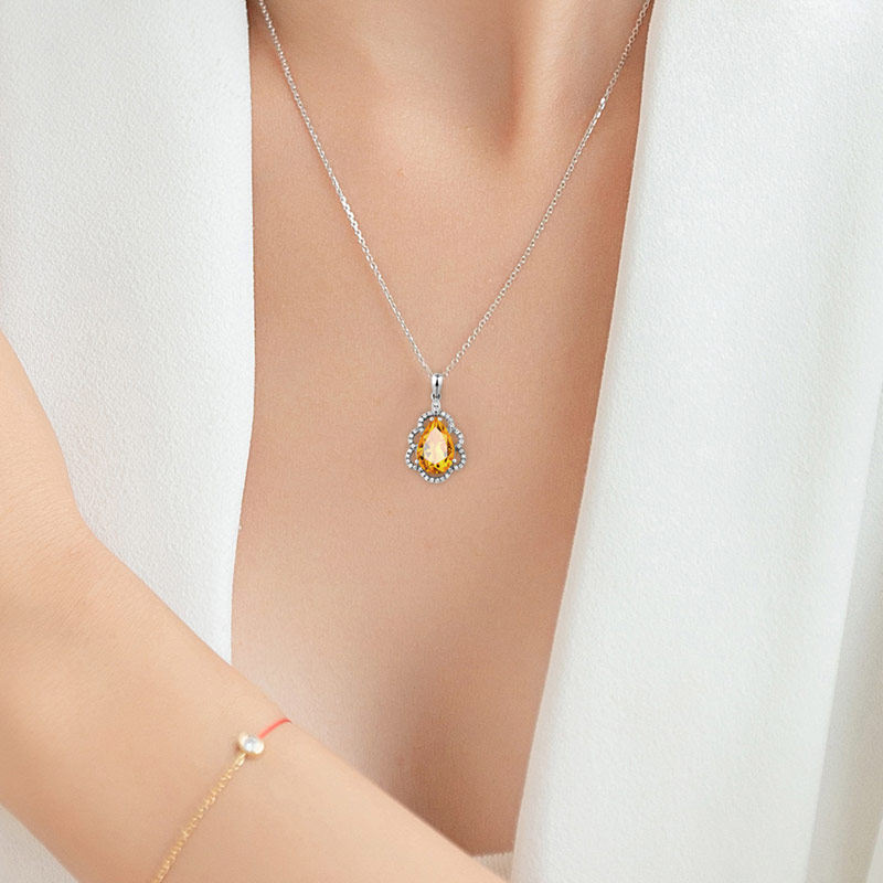 📚 Yngel/蜜安琪3.07克拉天然黄水晶吊坠 18K金彩色珠宝镶嵌 女项链
