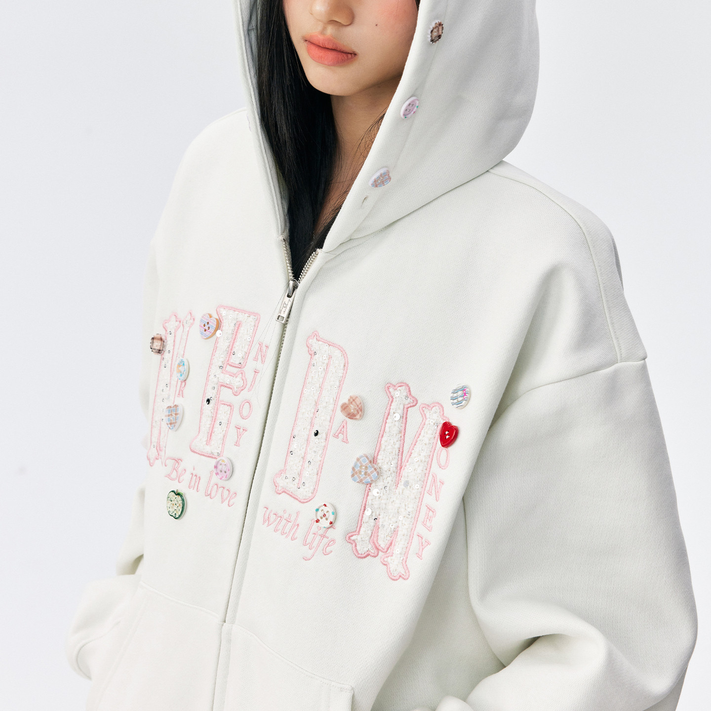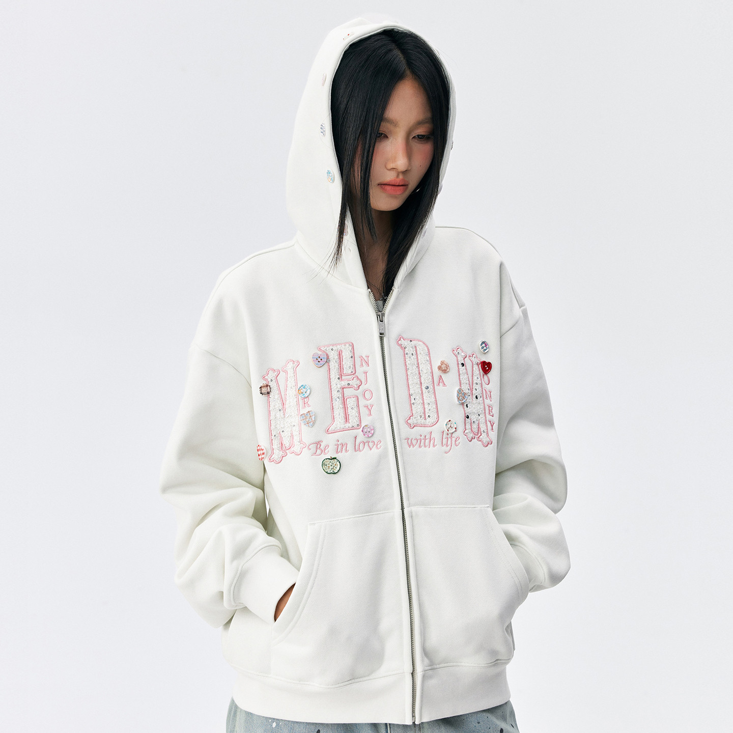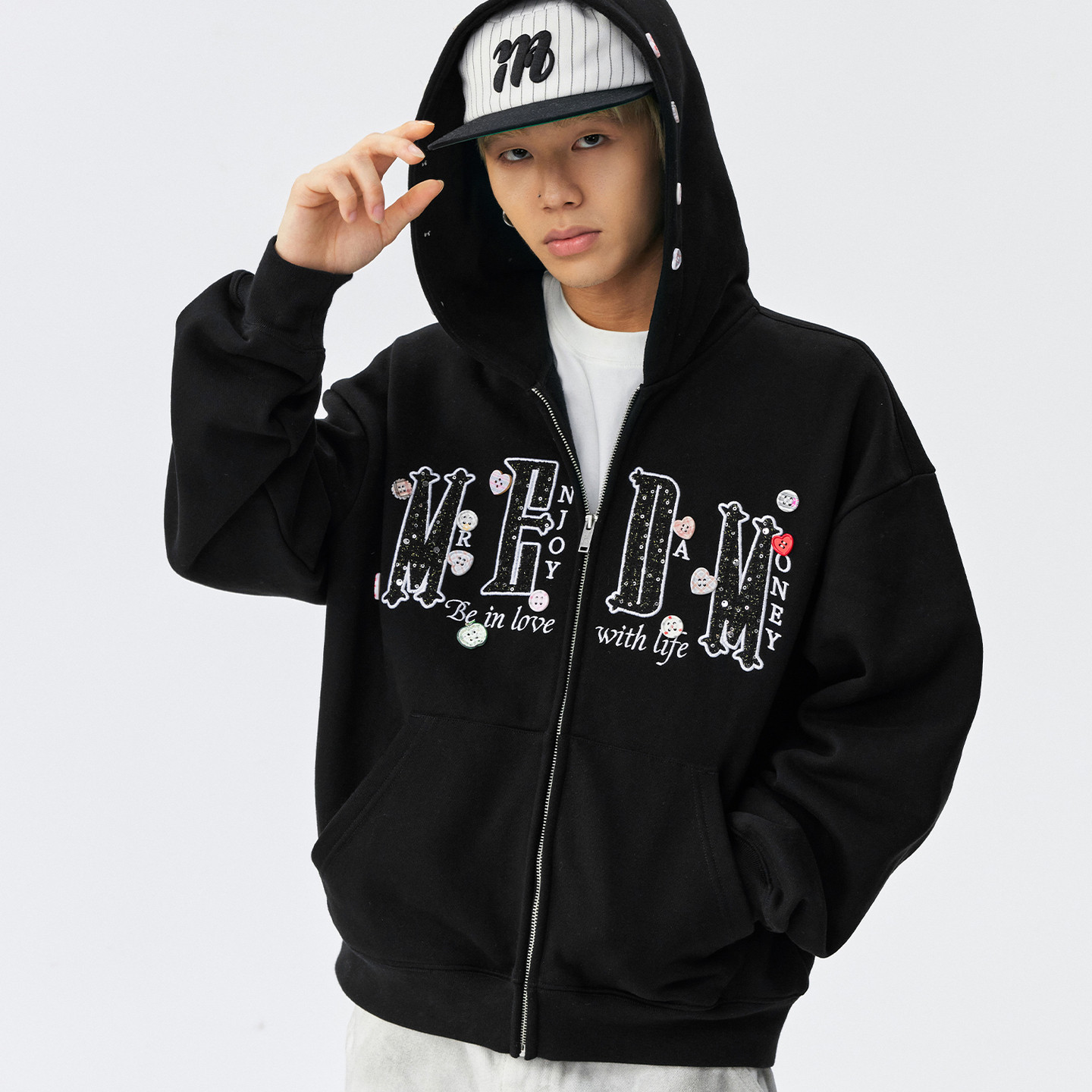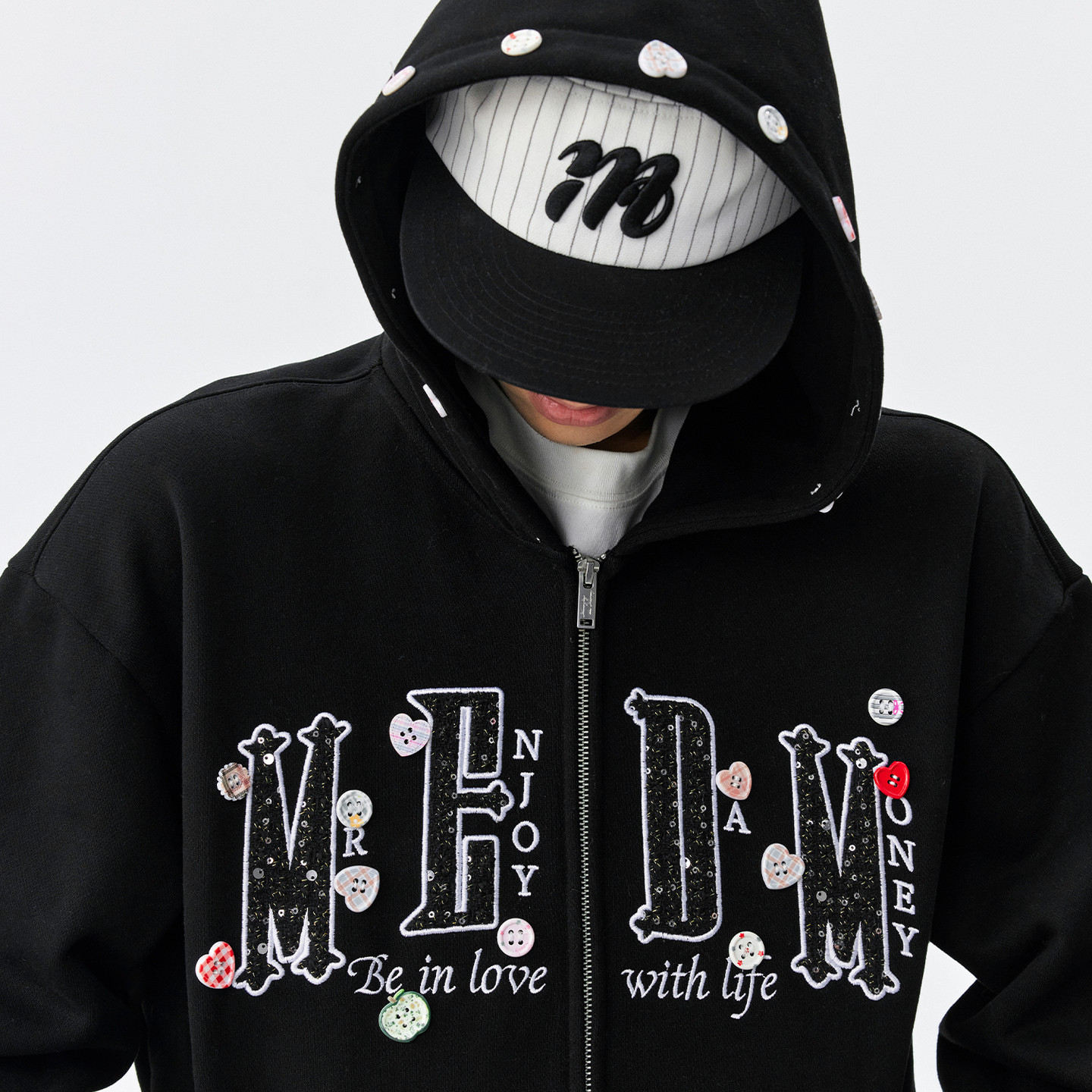 📚 MEDM 纽扣贴粗花呢logo休闲连帽卫衣秋冬季潮流男女加绒拉链帽衫