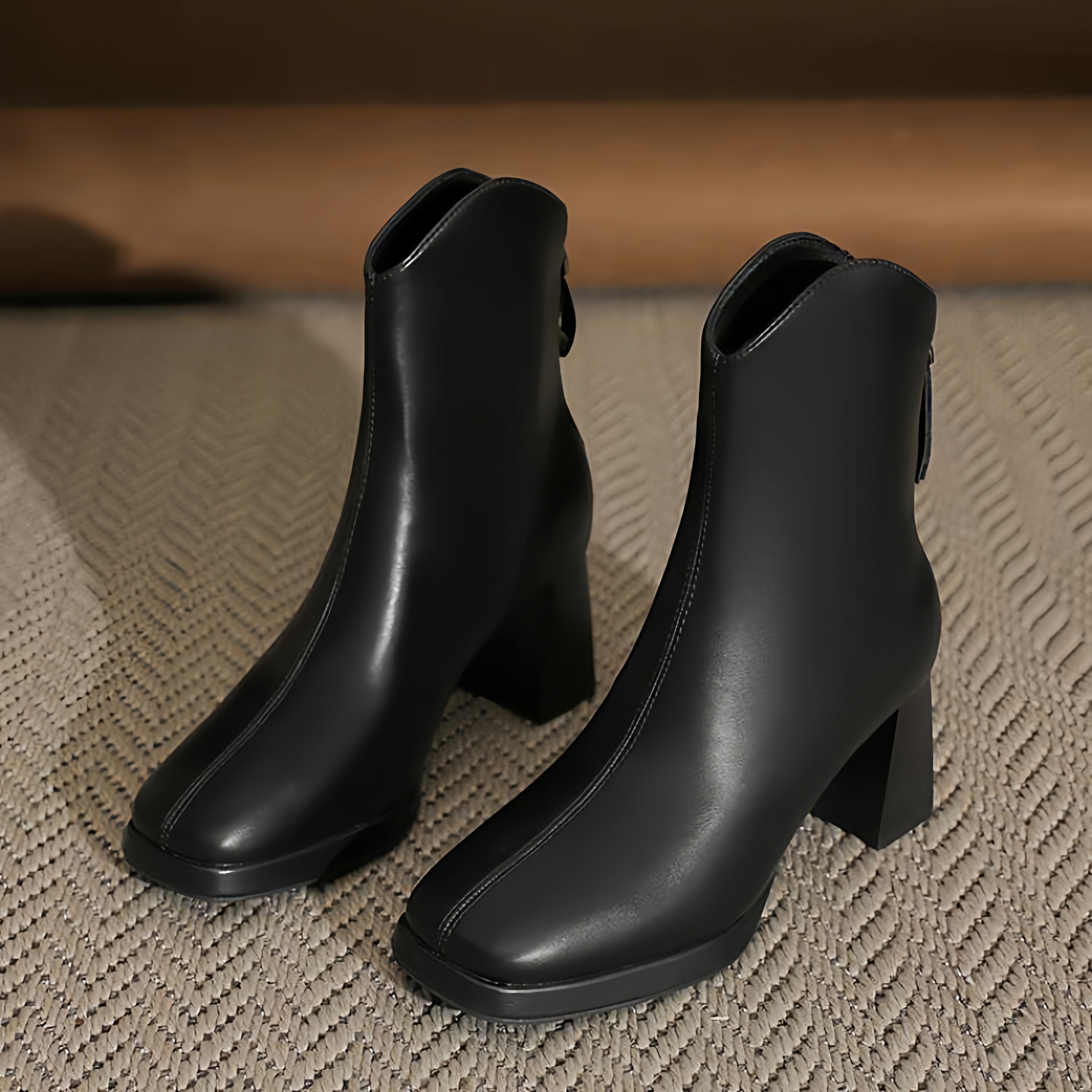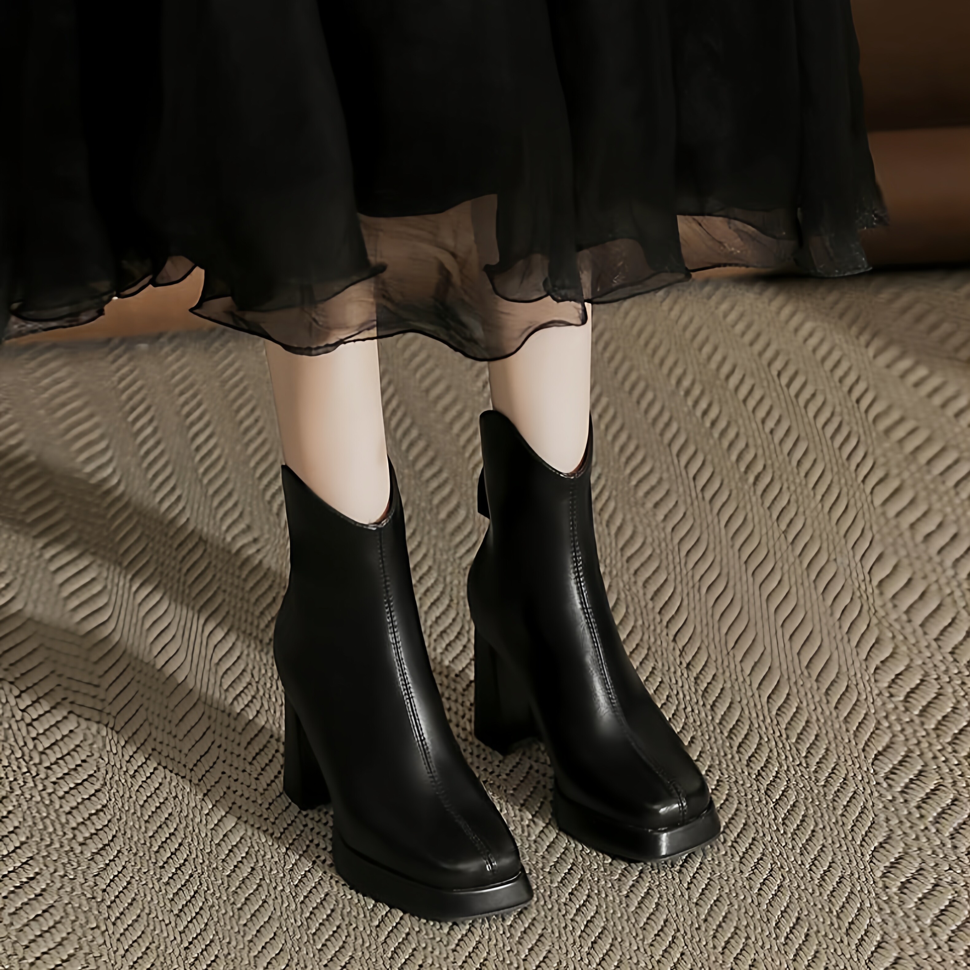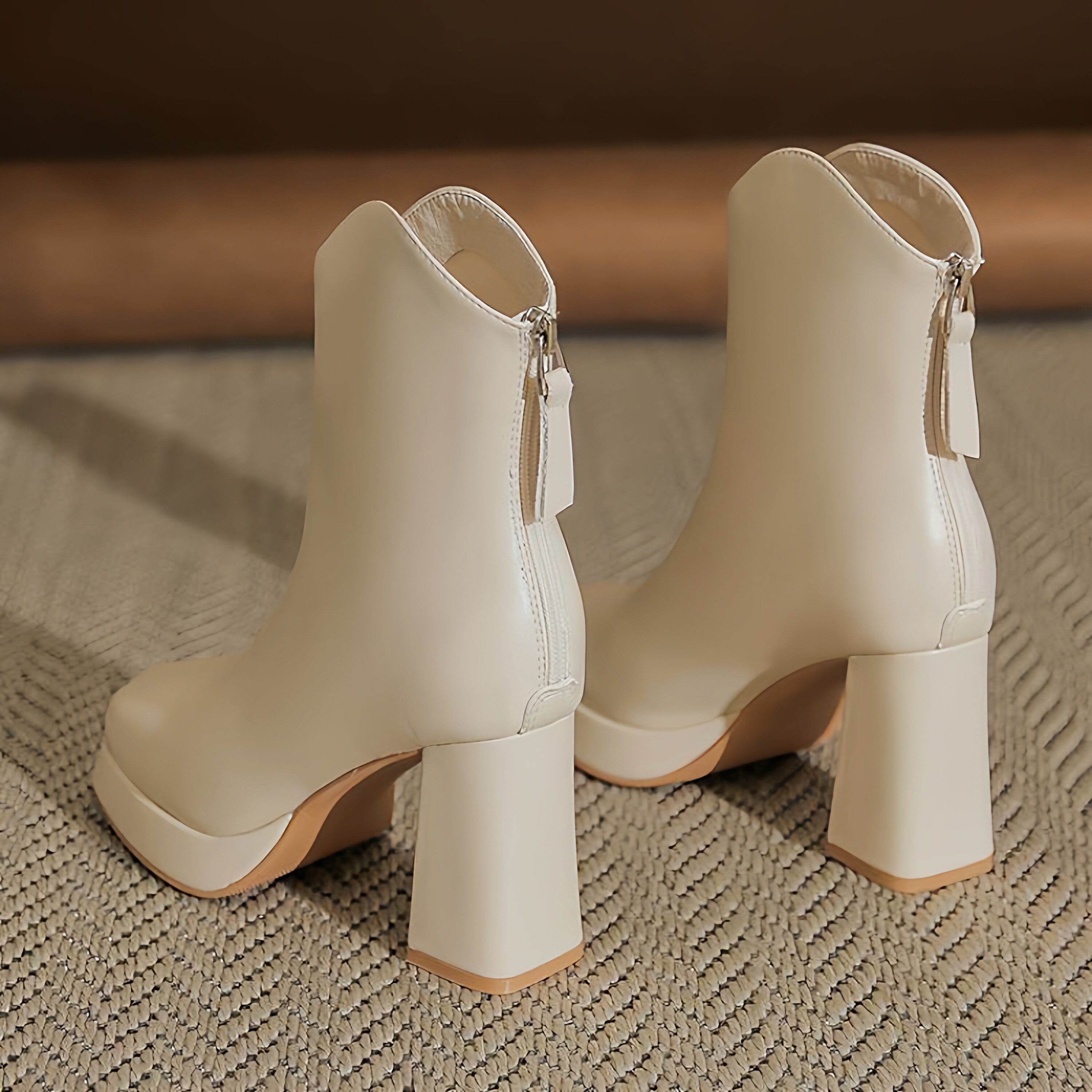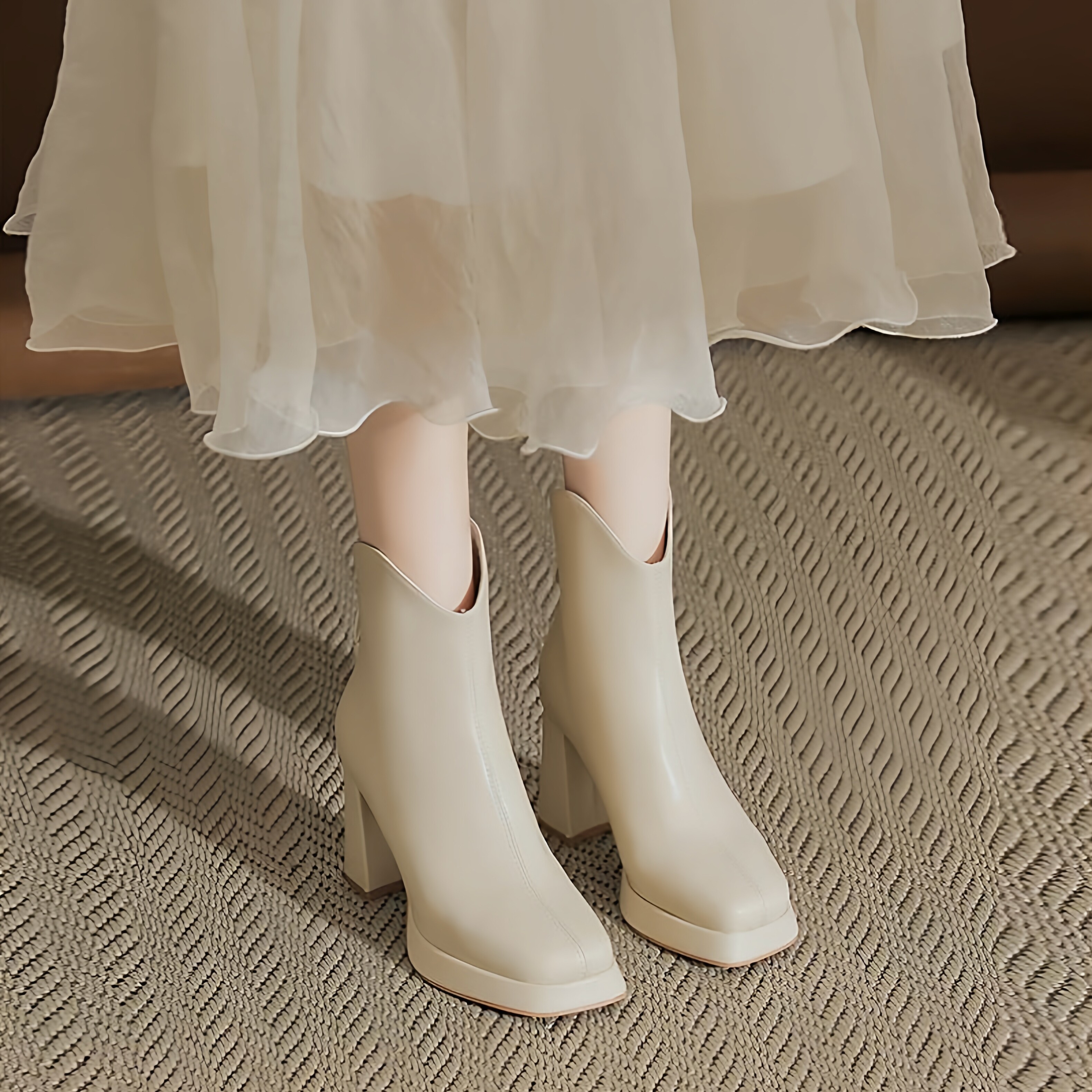 📚 温柔白色马丁靴小短靴粗跟高跟厚底防水台靴子秋冬新款切尔西靴女
