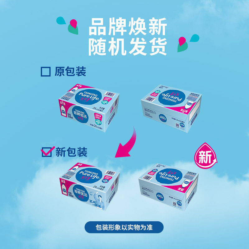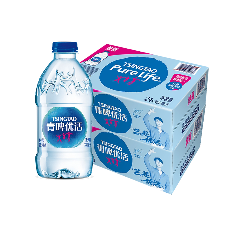 📚 青啤优活 饮用水非矿泉水 330mlx24瓶x2箱小瓶家庭量贩商务