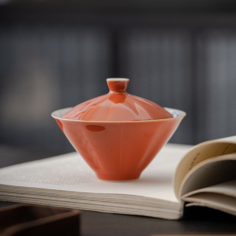 📚 手绘斗笠盖碗茶杯文人茶器套装中式家用单个小茶盏功夫泡茶碗