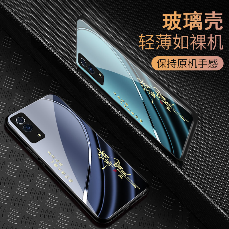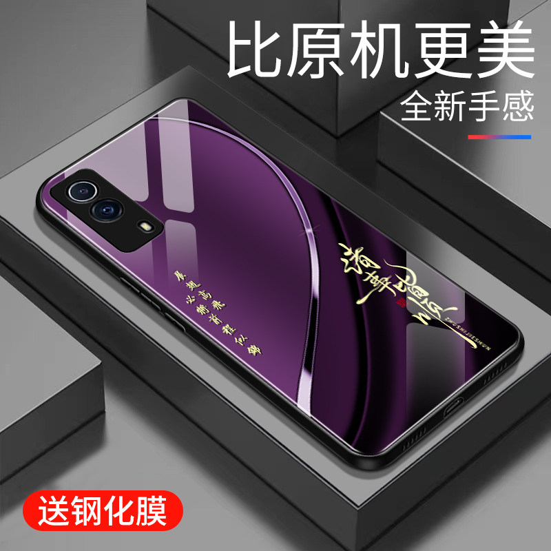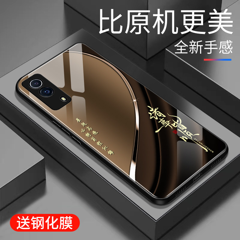 📚 适用于iQOOz5x手机壳玻璃男女新款个性渐变网红创意保护套镜面vivo时尚潮牌硅胶iQOOz5x手机套超薄外壳高颜值