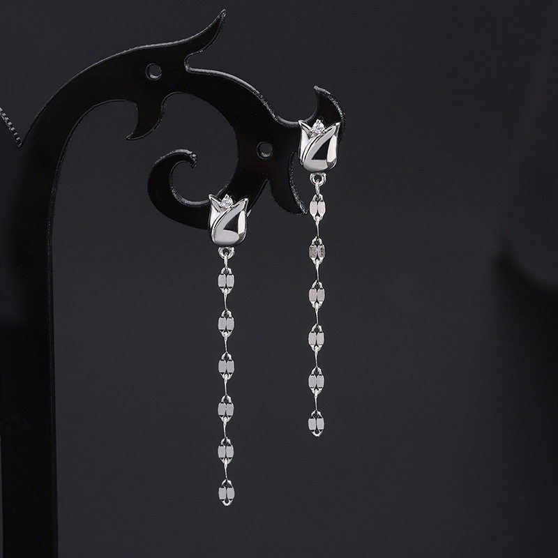📚 玫瑰花流苏耳环复古港风优雅气质嘴唇链郁金香花朵耳钉女长款耳链