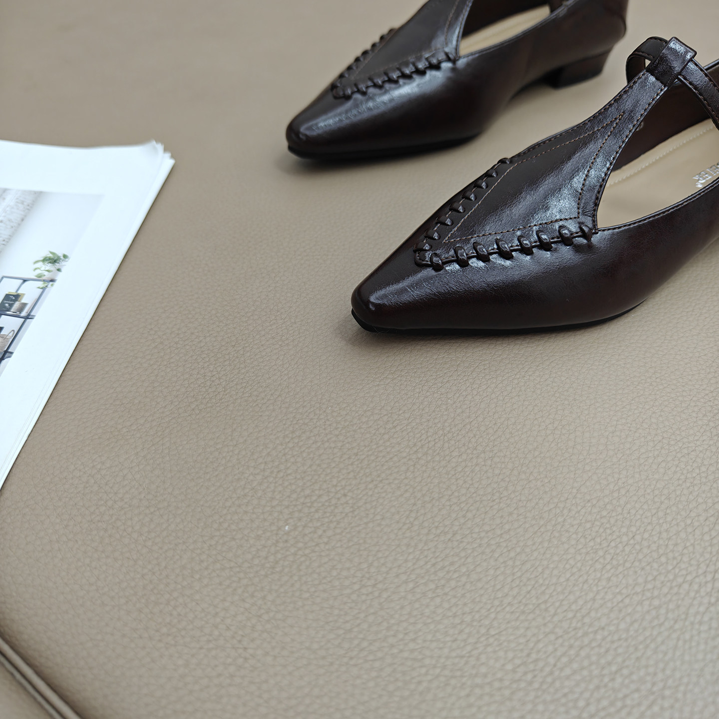 📚 法式复古尖头玛丽珍鞋女2025新款复古一脚蹬浅口单鞋拼接小皮鞋女