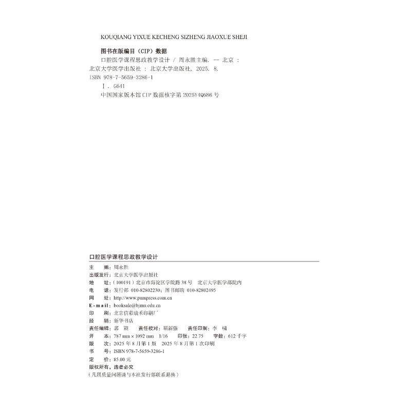 📚 口腔医学课程思政教学设计(北京大学课程思政丛书) 周永胜 主编 著 大学教材生活 新华书店正版图书籍 北京大学医学出版社