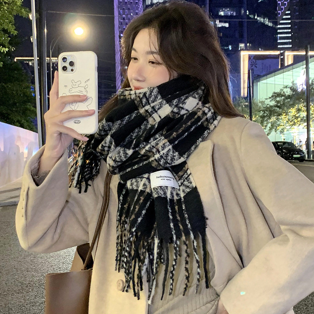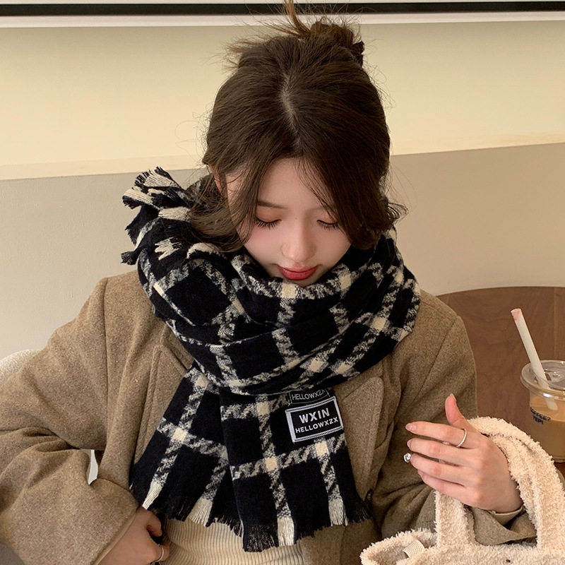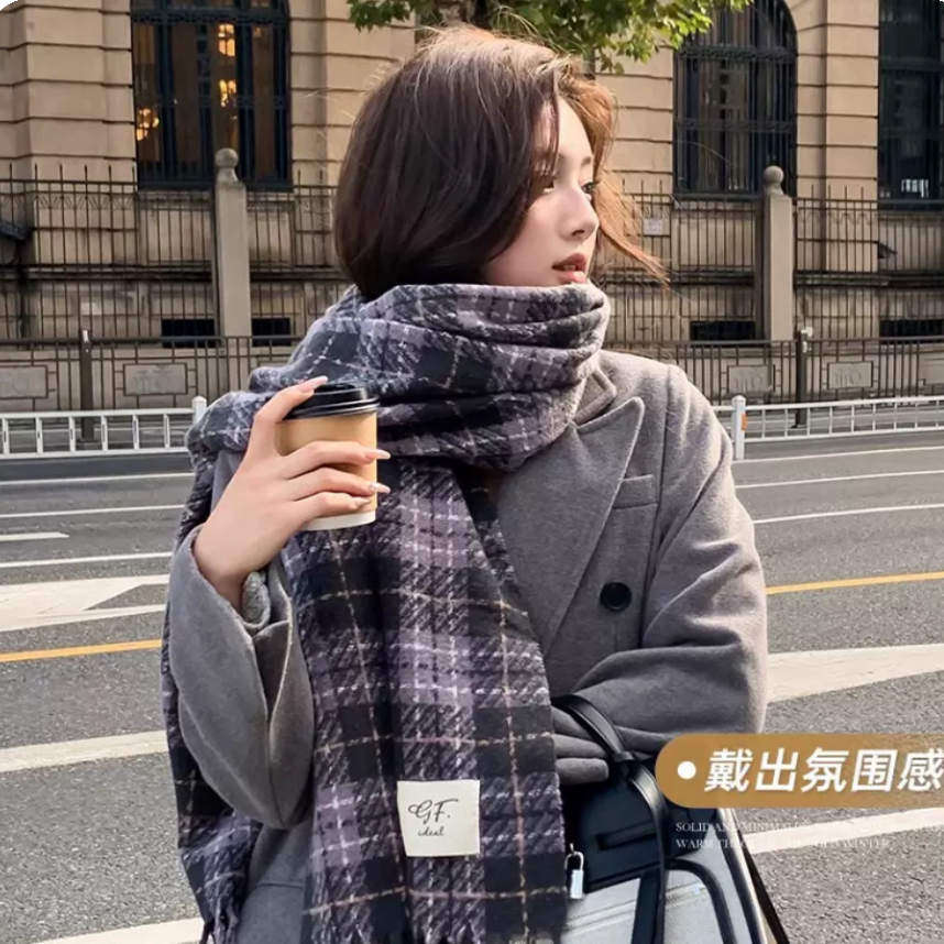 📚 围巾女冬季2025新款百搭披肩仿羊绒高级感加厚黑白千鸟格保暖围脖