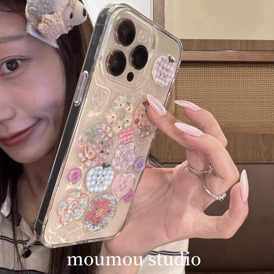 📚 日韩彩色花朵蝴蝶纽扣适用小米15 14pro手机壳小米13 12s滴胶10S 11青春civi5 4pro软壳civi3/2/1s链条保护套
