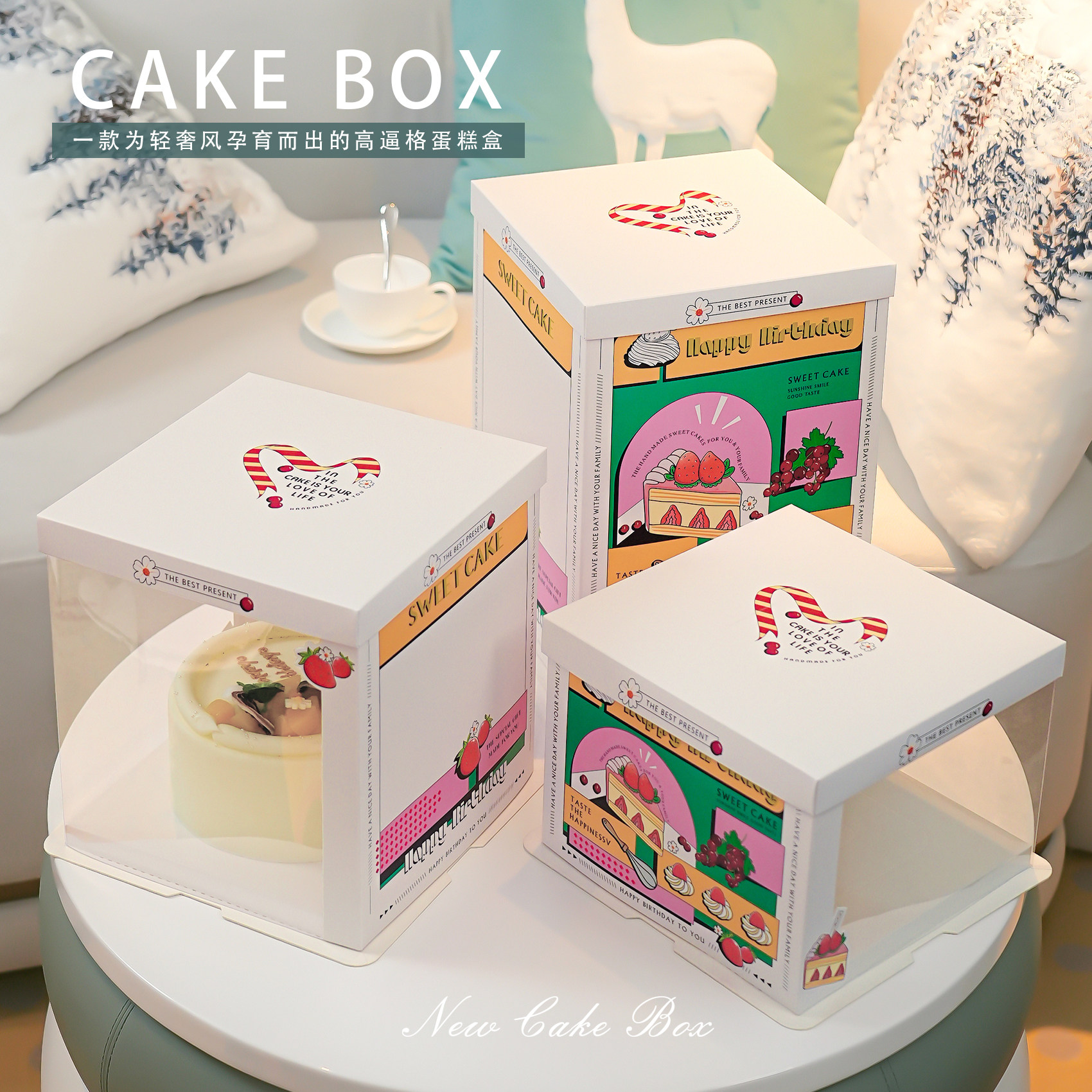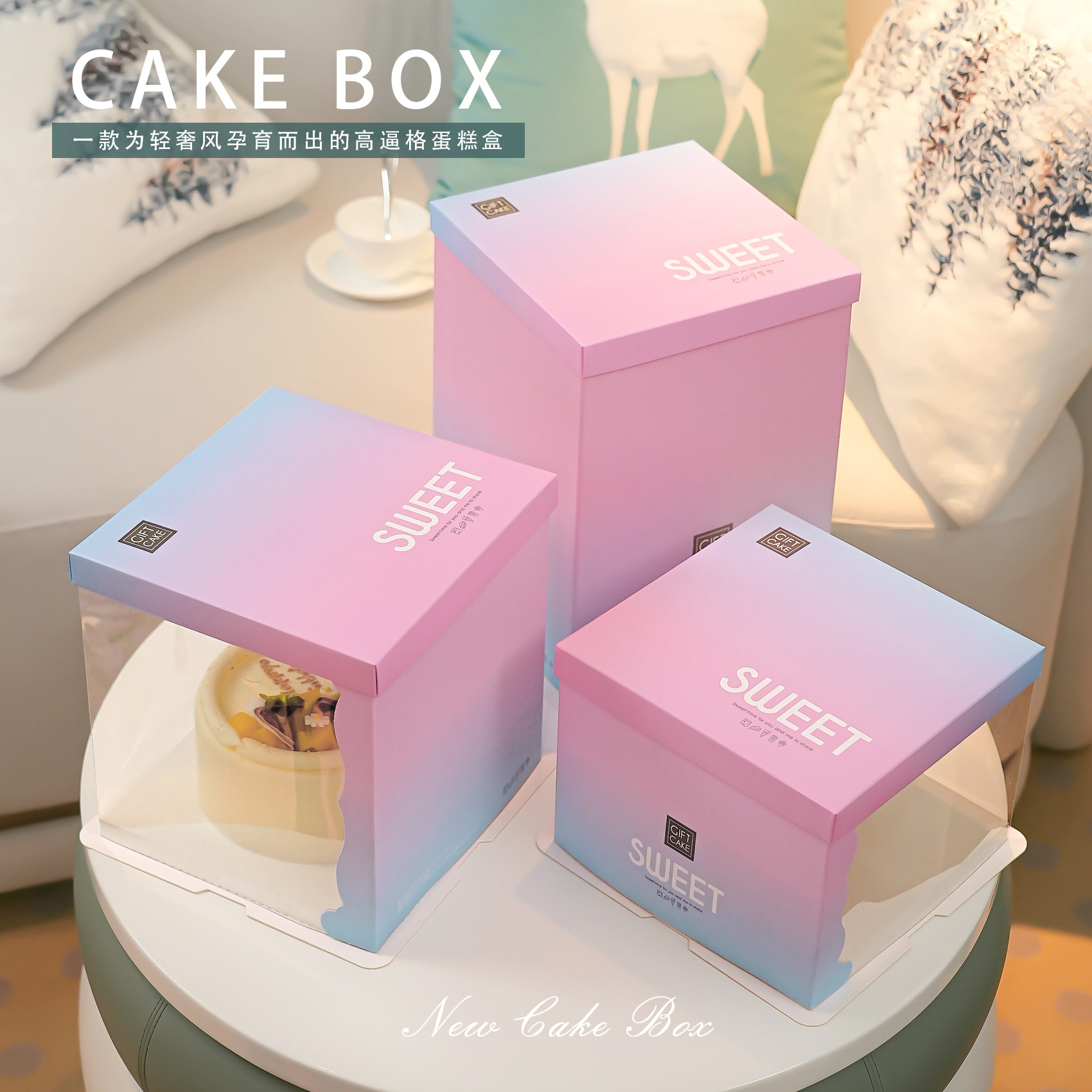📚 50套半透明生日蛋糕盒包装盒子6六8八10十12寸双层加高定制手提