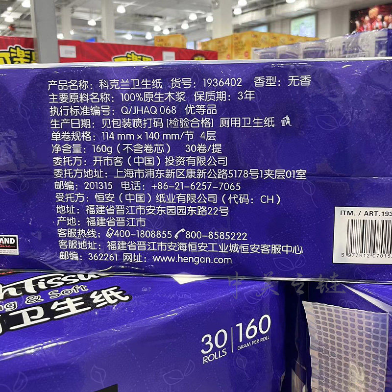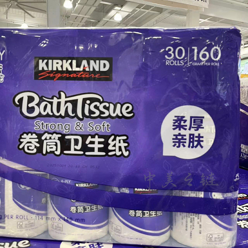 📚 Costco代购 科克兰卷筒卫生纸160g*30卷压花加厚纸巾厕纸手纸