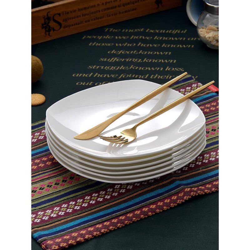 📚 纯白盘子10只装骨瓷盘家用菜盘陶瓷碟子早餐盘四方形牛排盘子平盘