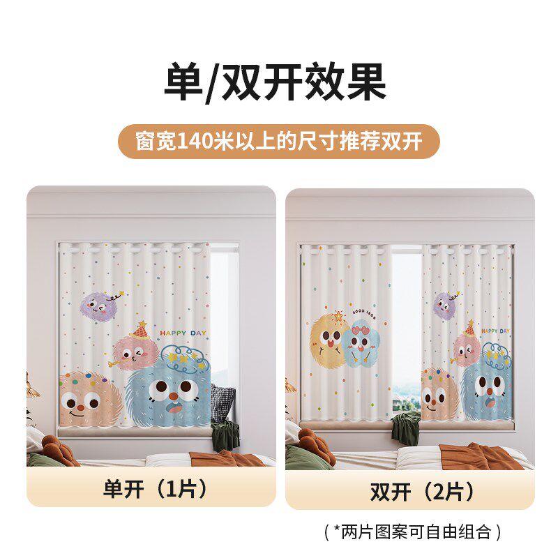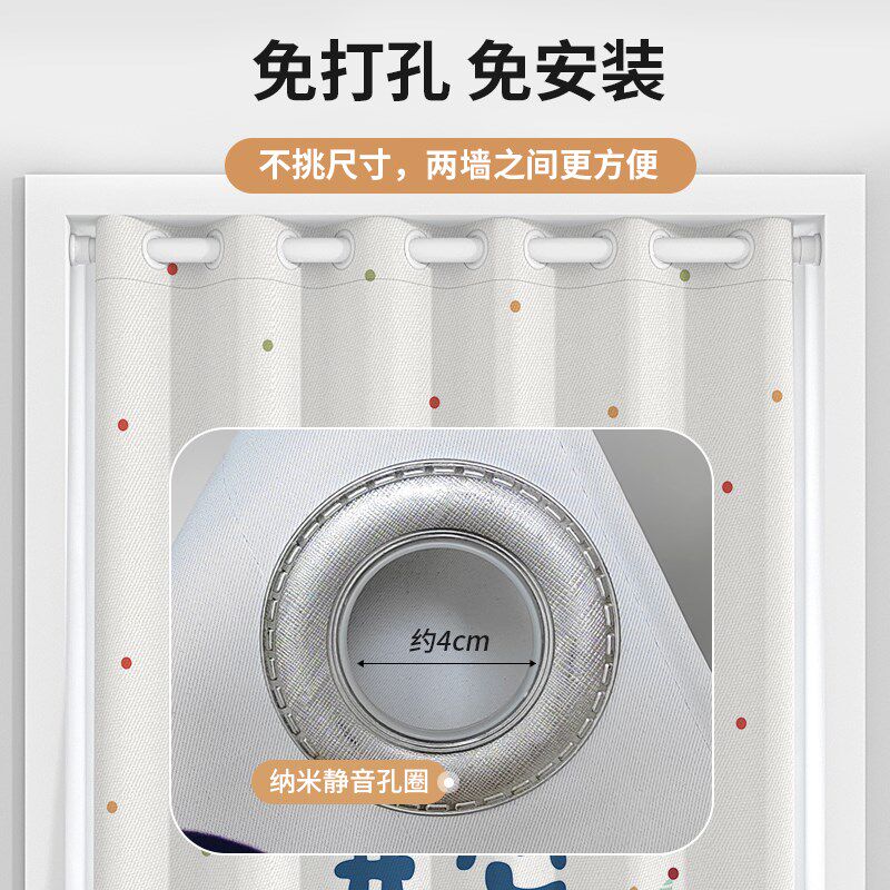📚 儿童房窗帘免打孔安装遮光2024新款卧室飘窗男女孩短伸缩杆一整套