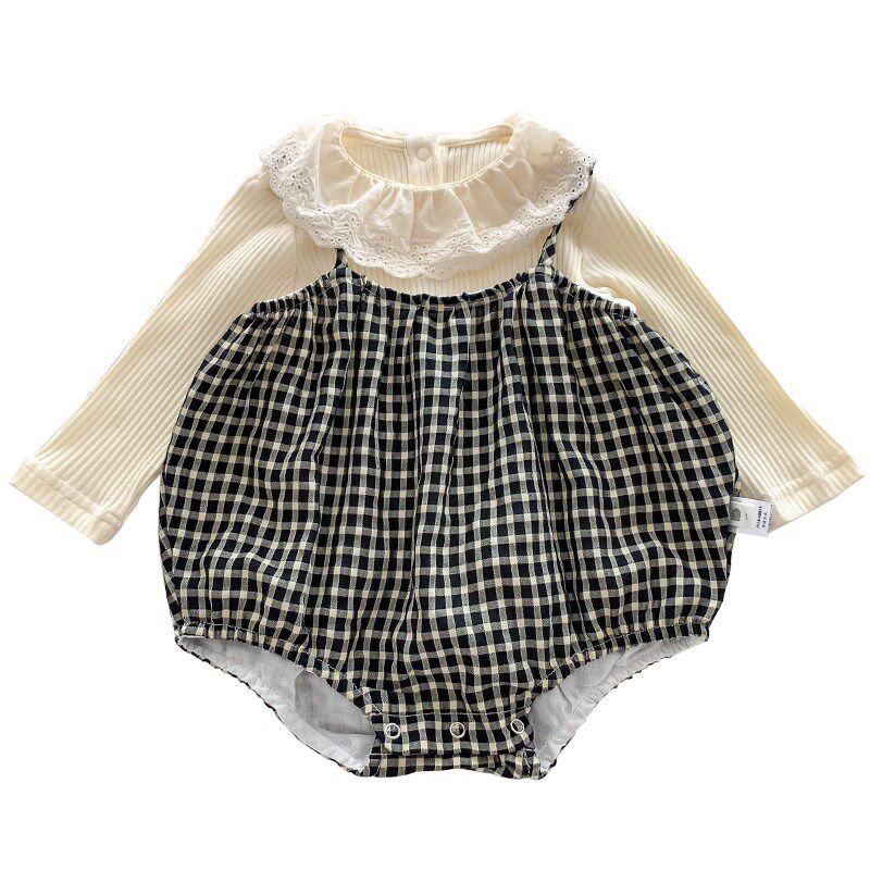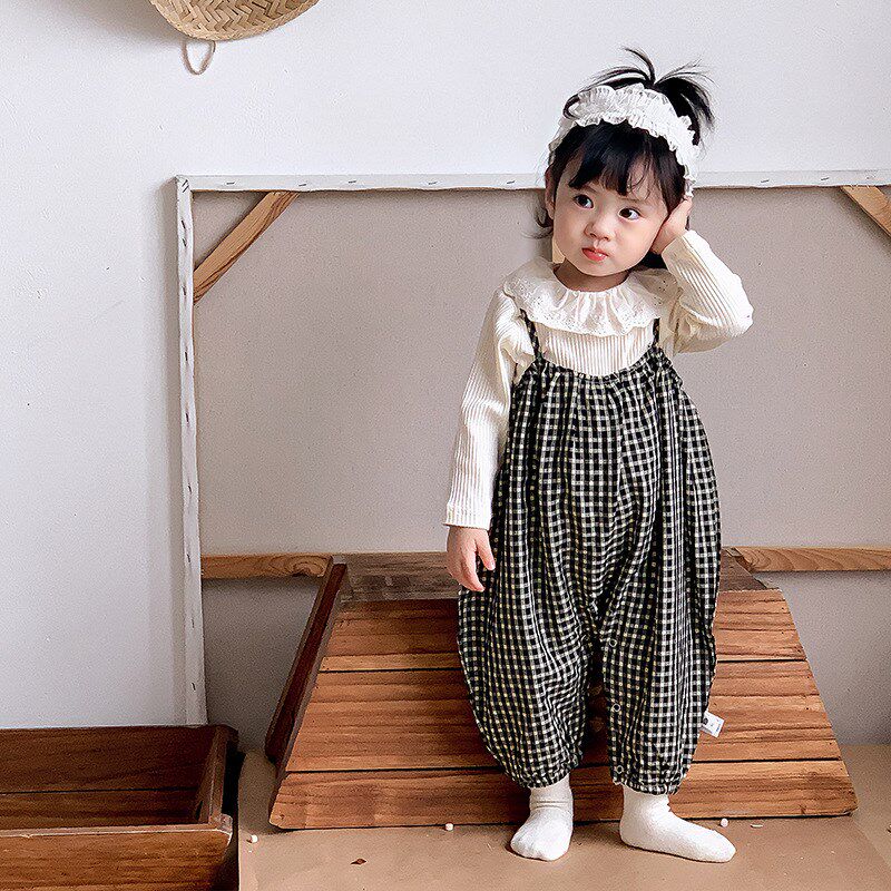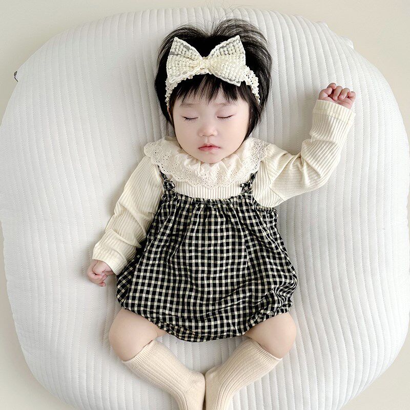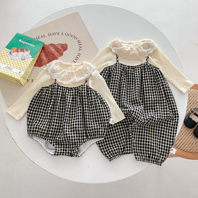 📚 婴儿春装格子两件套女宝宝秋季韩版套装洋气时Q髦外出背带裤连体
