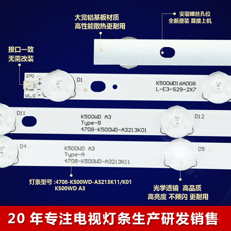 📚 全新适用50寸飞利浦50PFL3040 T3灯条4708-K500WD-A3213K11 K01