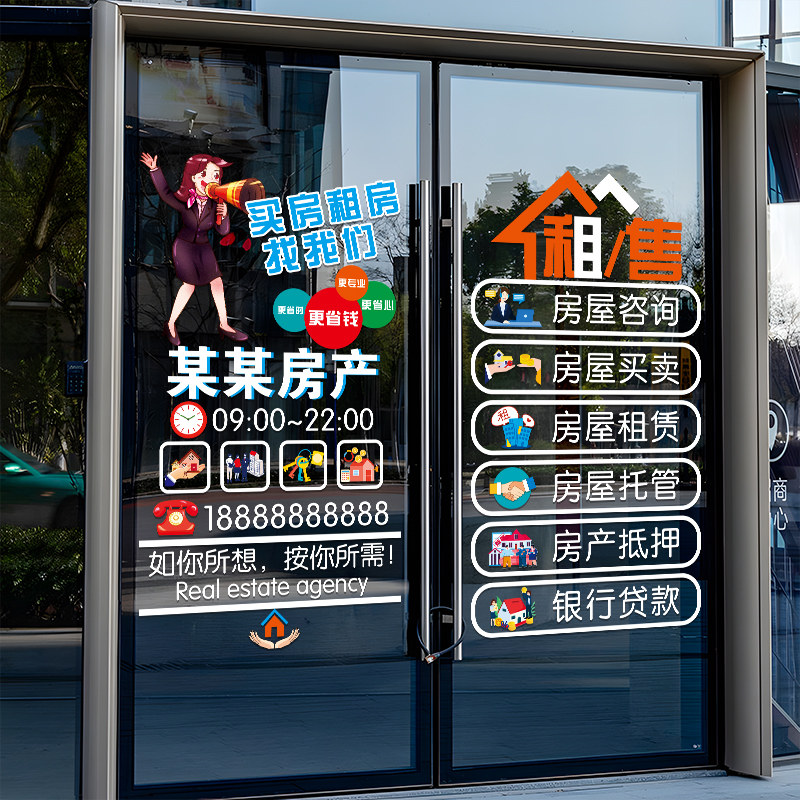 📚 速发房产中介门店布置务告政纸租售房源门贴家贴服广橱窗装饰贴画