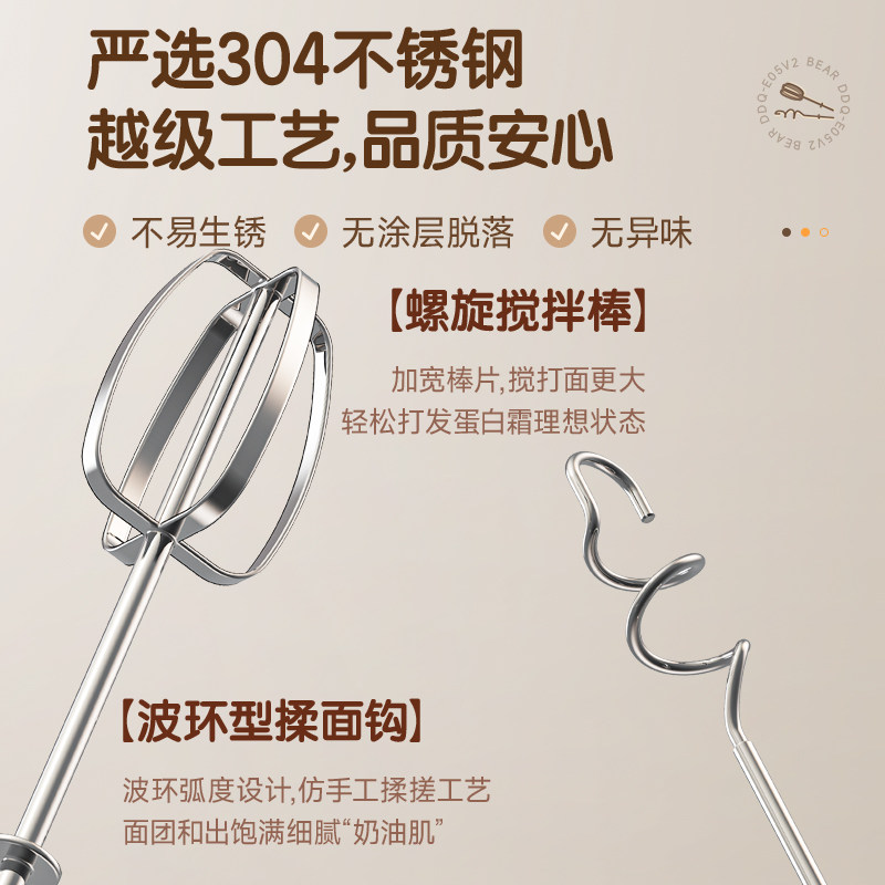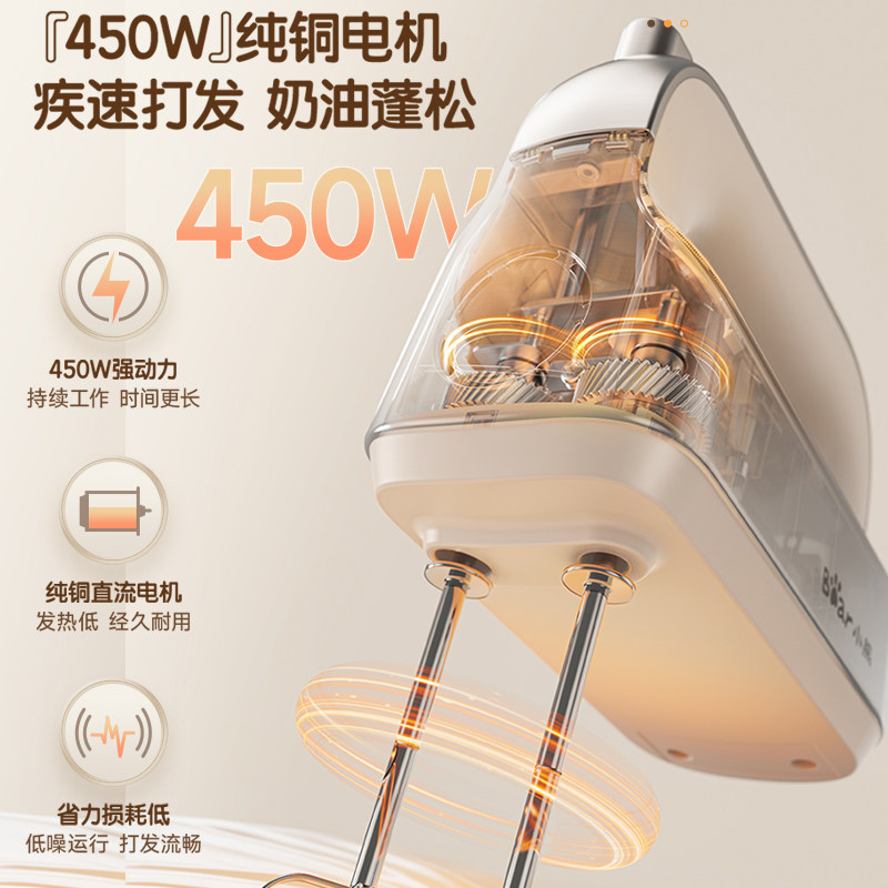 📚 小熊大功率电动打蛋器家用全自动小型304不锈钢烘培专用打发 450W