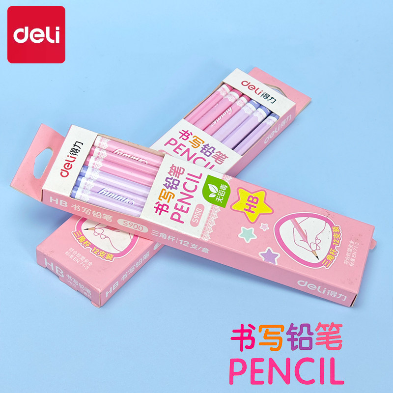 📚 得力S900三角杆铅笔儿童矫正握姿小学生专用HB无铅毒幼儿园铅笔