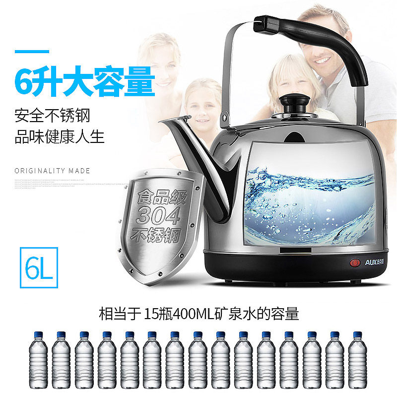 📚 AUX/奥克斯 AK-15N60电热水壶304不锈钢家用自动断电开水烧水壶6L