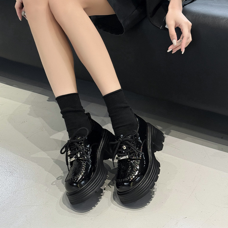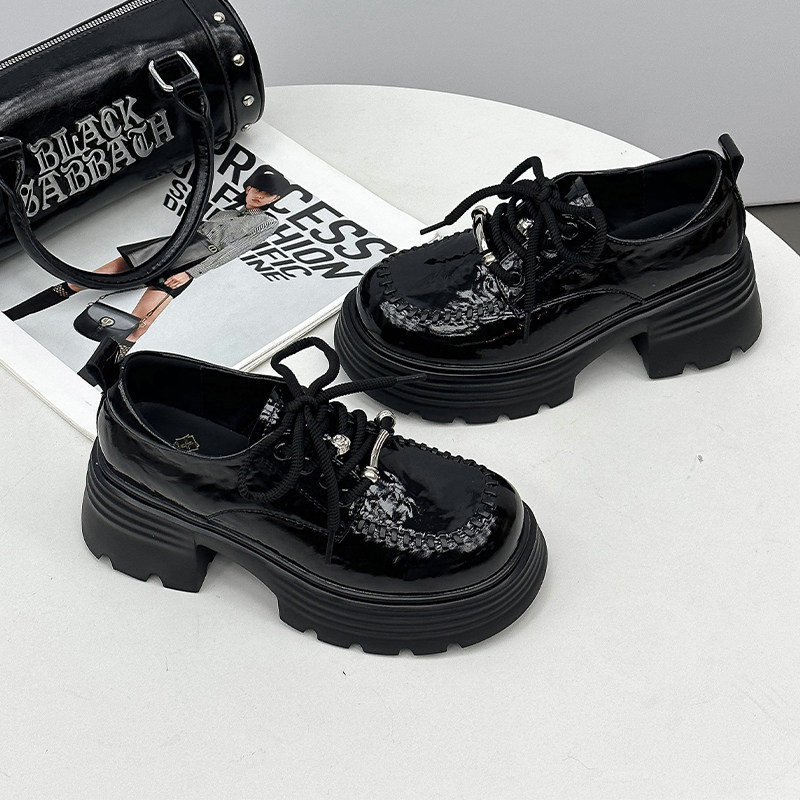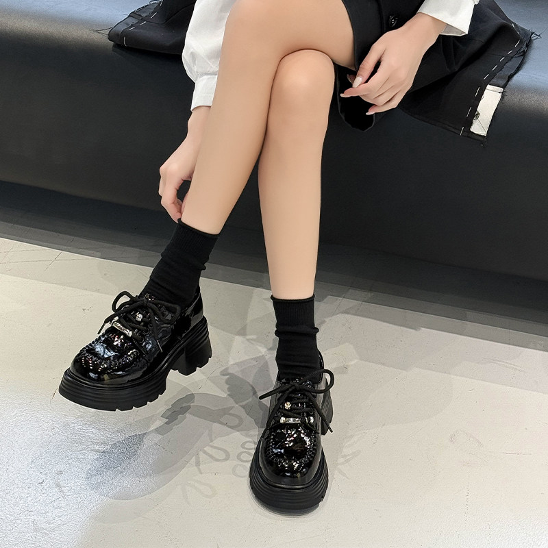 📚 英伦风小皮鞋女2026新款春秋百搭增高系带粗跟圆头复古日系jk单鞋