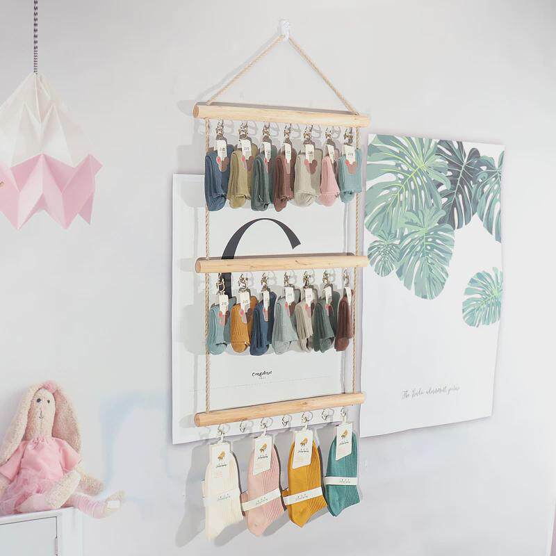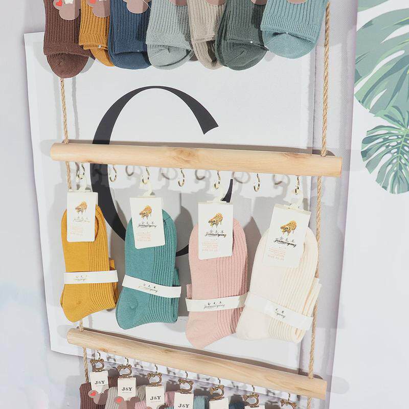 📚 原木袜子展示架饰品陈列收纳上墙挂架实木袜架服装店挂墙货架
