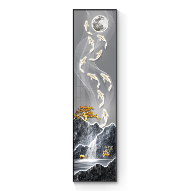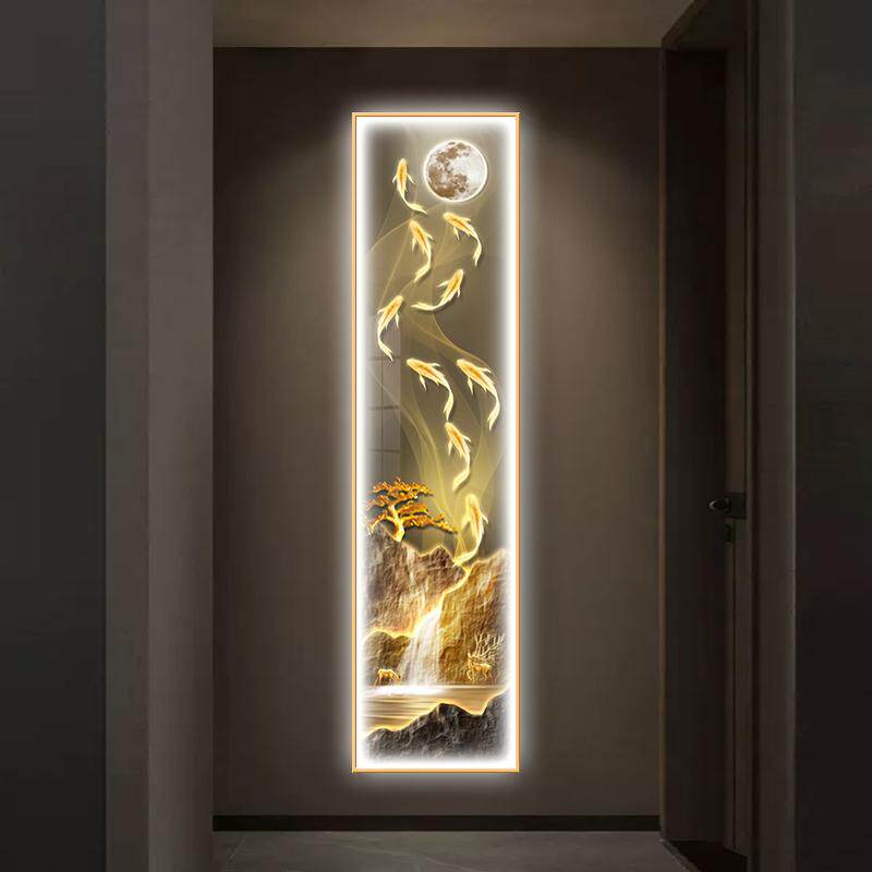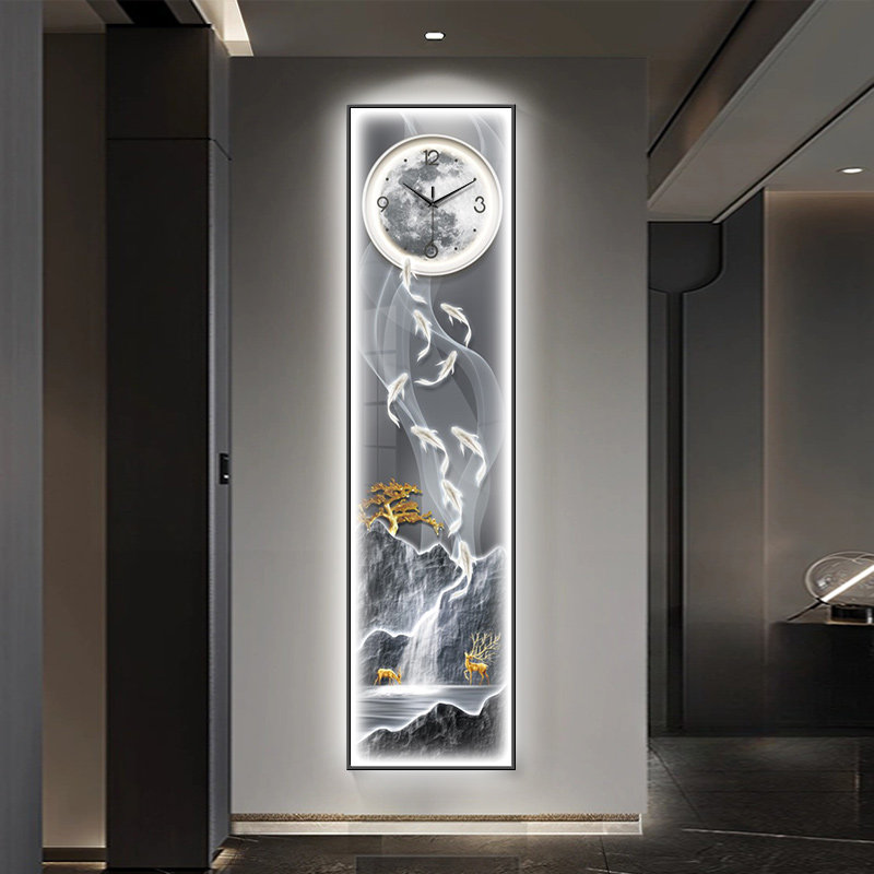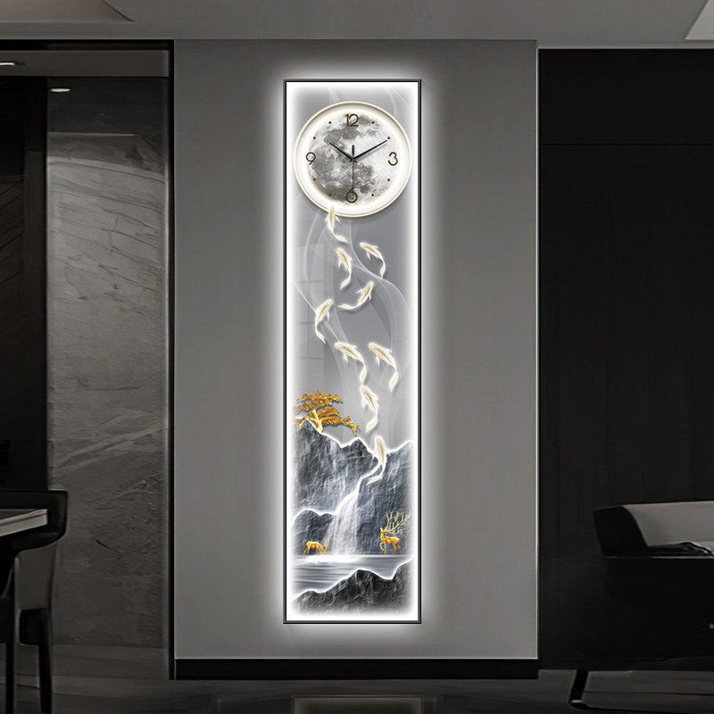 📚 现代轻奢九鱼图玄关过道装饰画钟表挂钟客厅背景墙挂画发光壁画灯