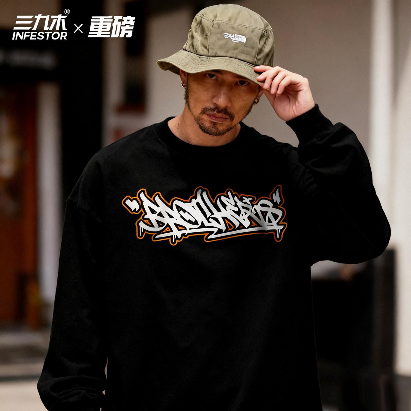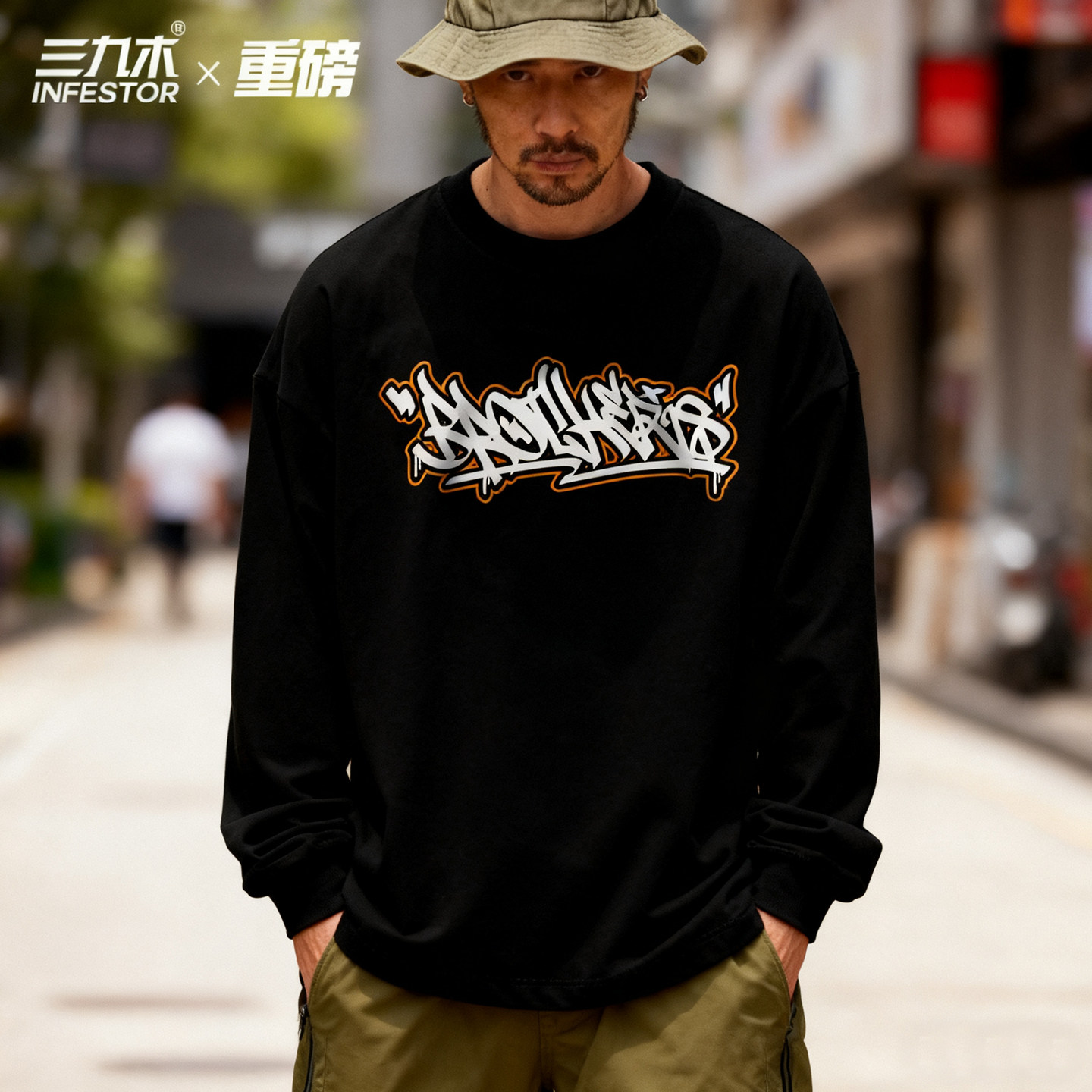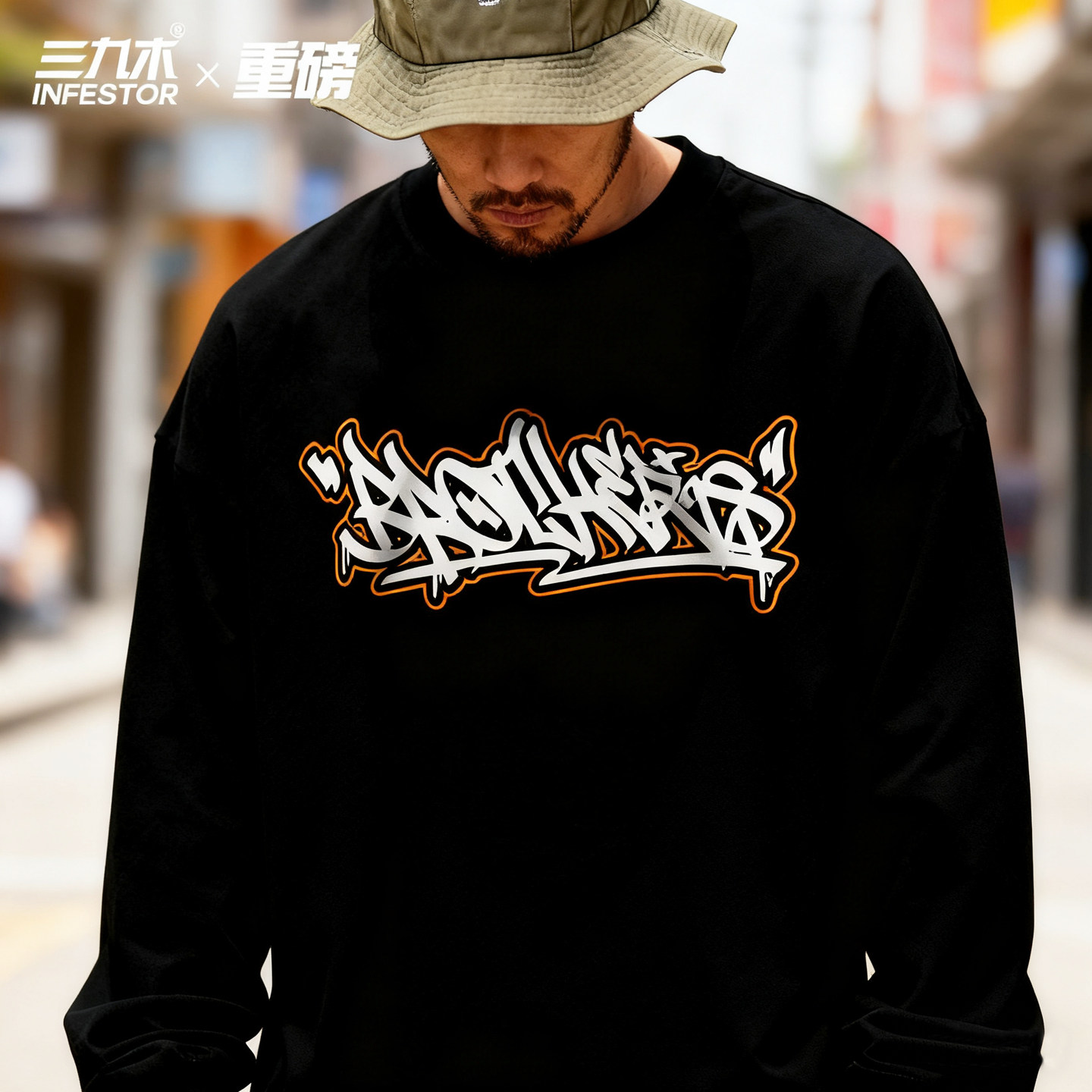 📚 三九木兄弟Brother涂鸦街舞嘻哈潮街 hiphop滑板圆领长袖运动bboy
