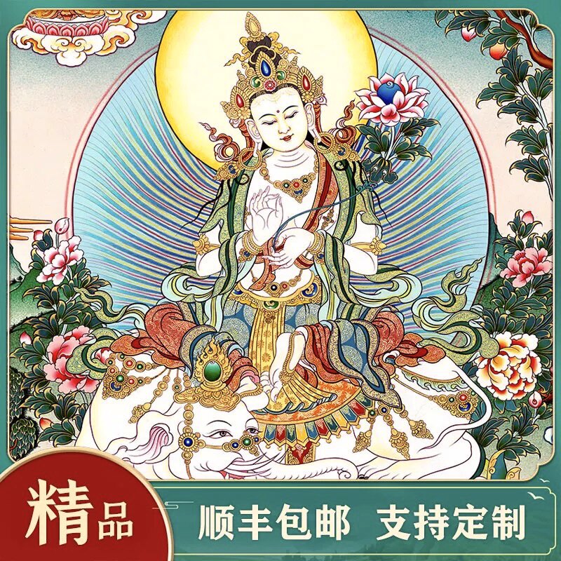 📚 普贤菩萨热贡唐卡西藏尼泊尔手绘版画客厅玄关书房装饰挂画精品
