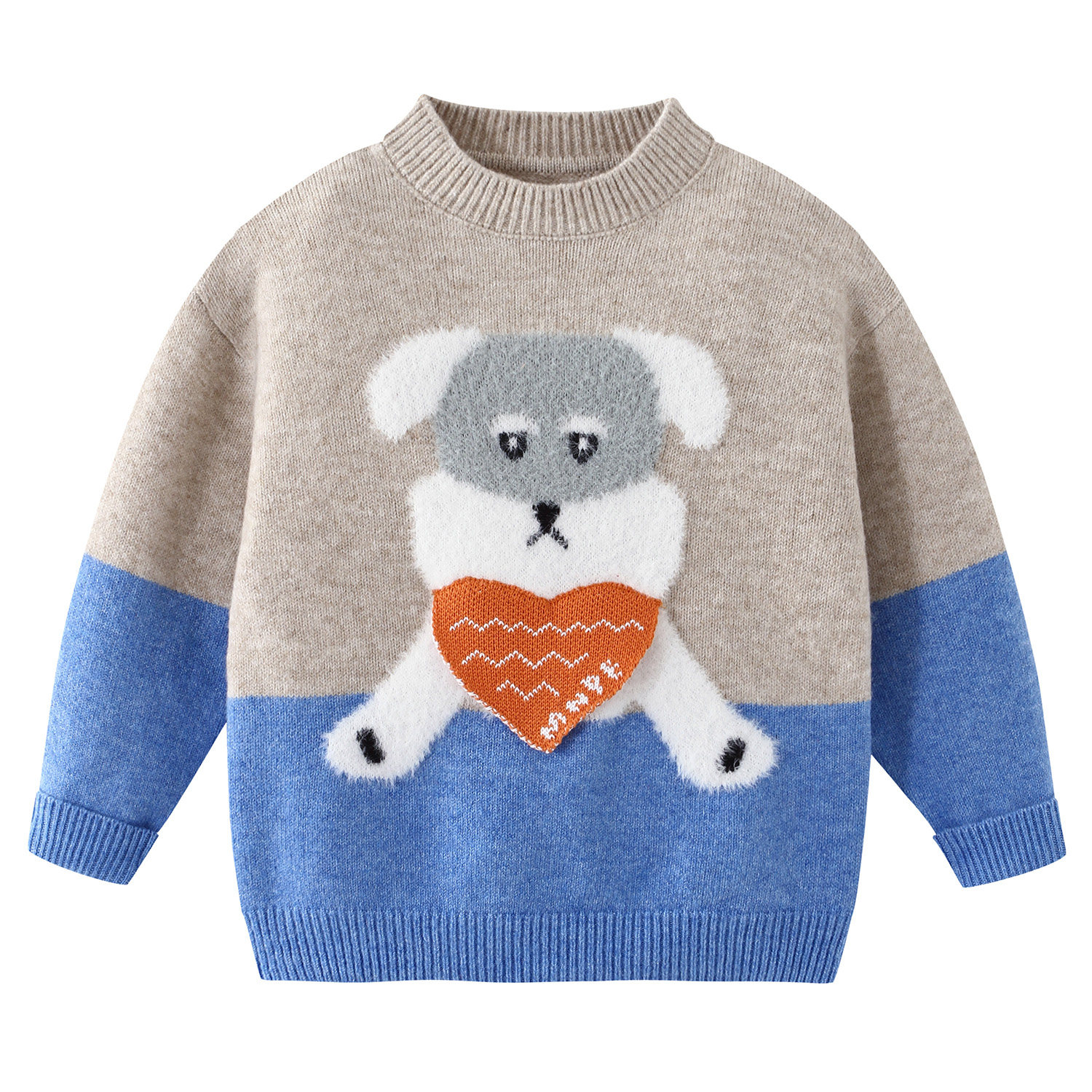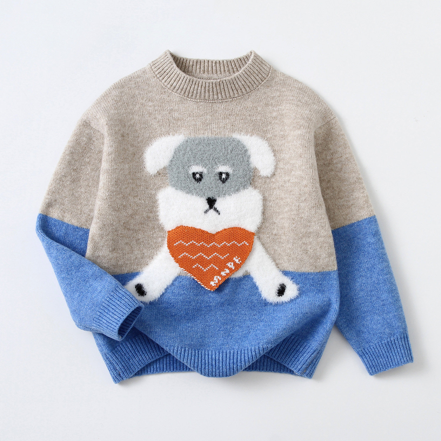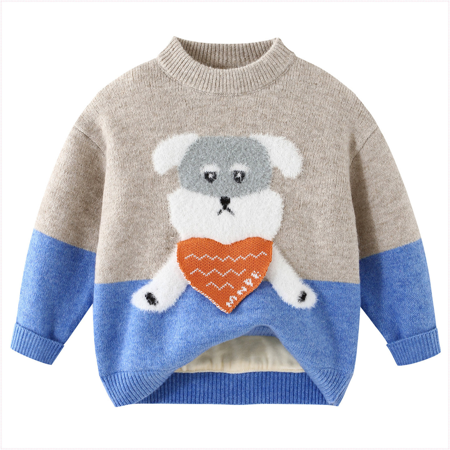 📚 男童圆领羊毛衫冬季儿童加绒加厚毛衣2026新款宝宝卡通打底衫8206