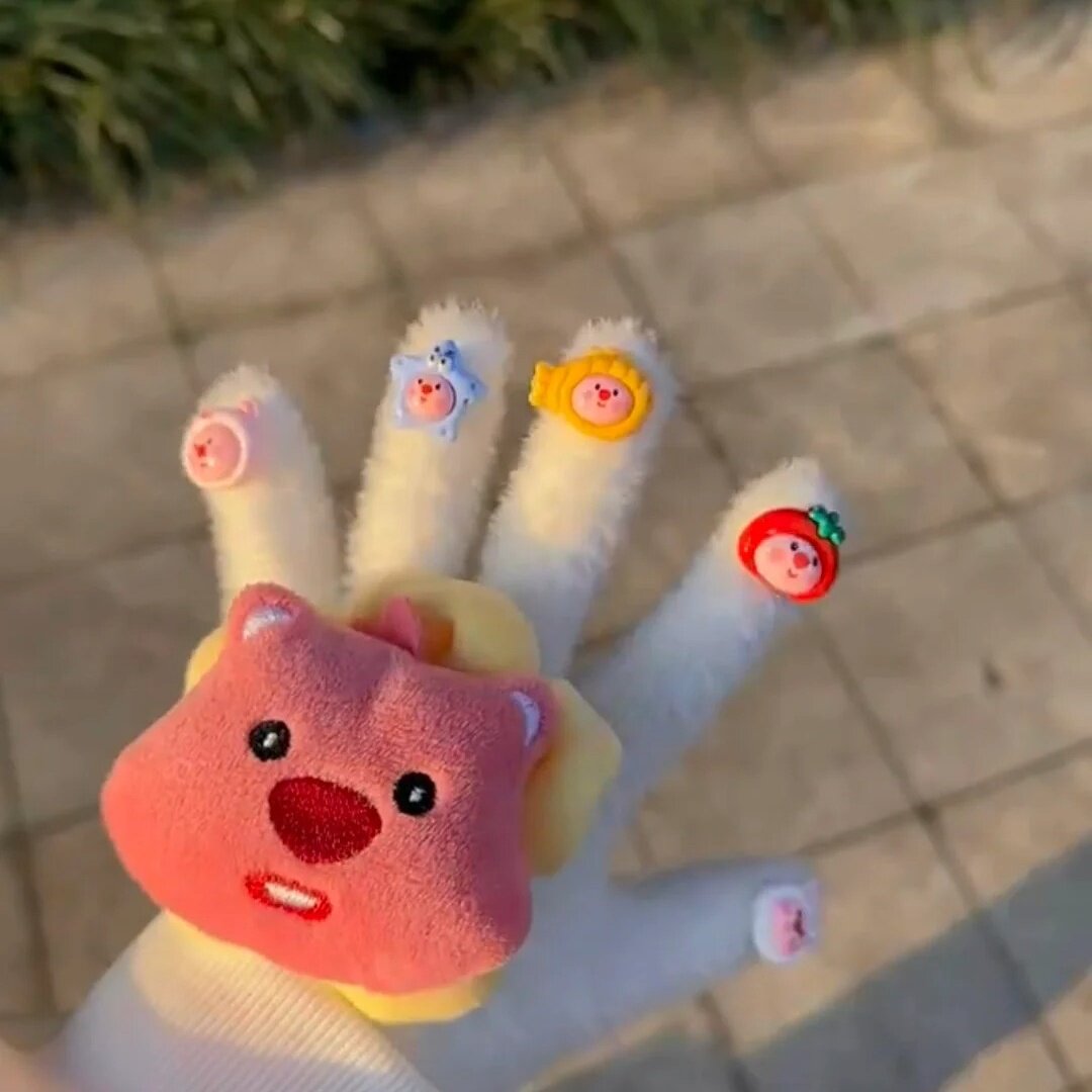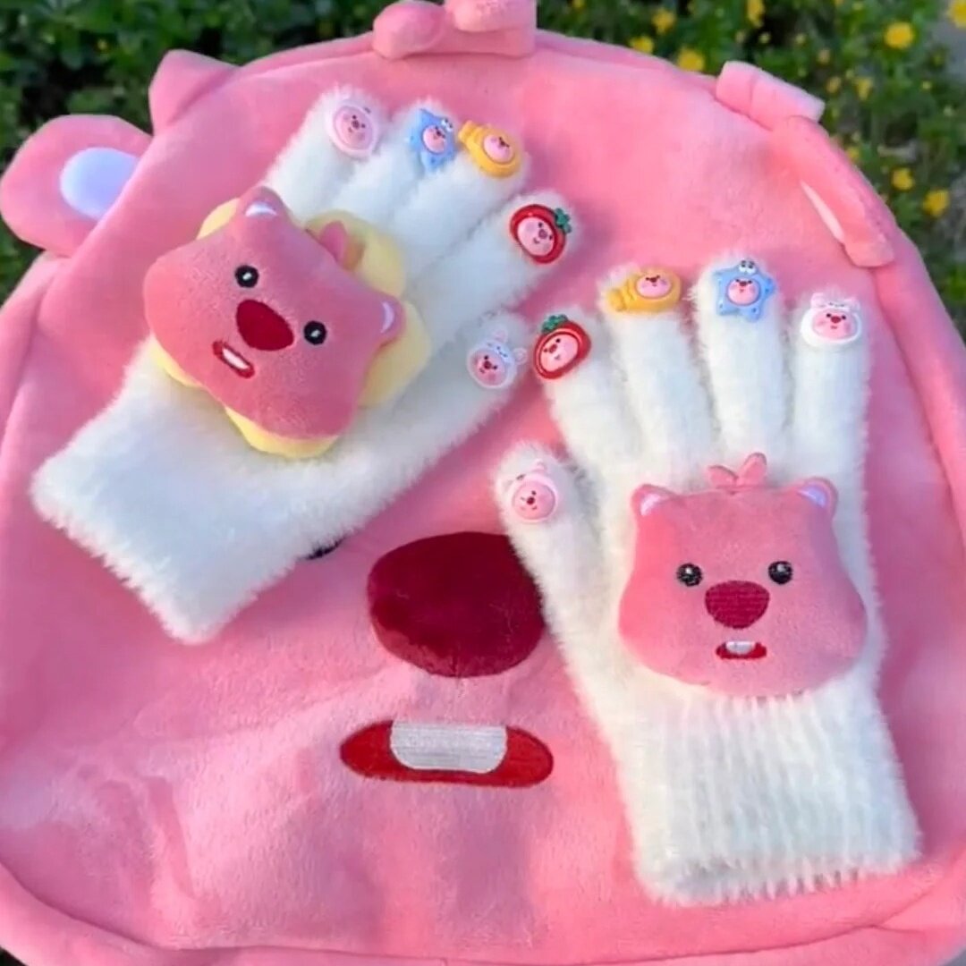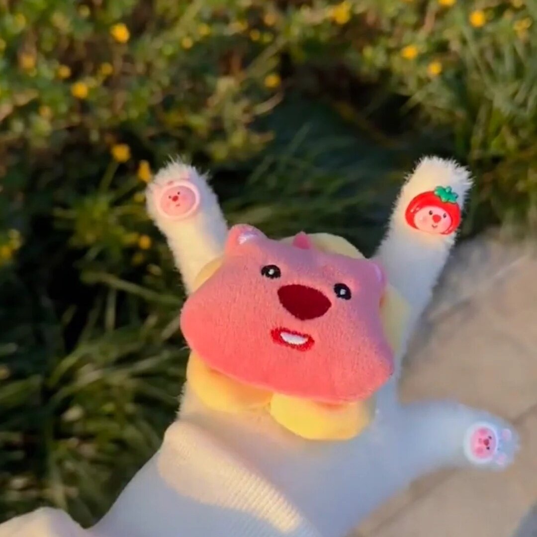 📚 儿童秋冬loopy海狸头像手套凯德猫手套可爱毛绒保暖卡通玩偶手套