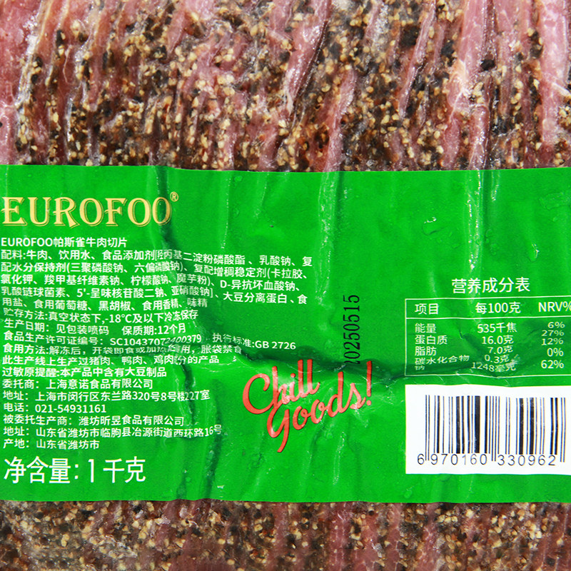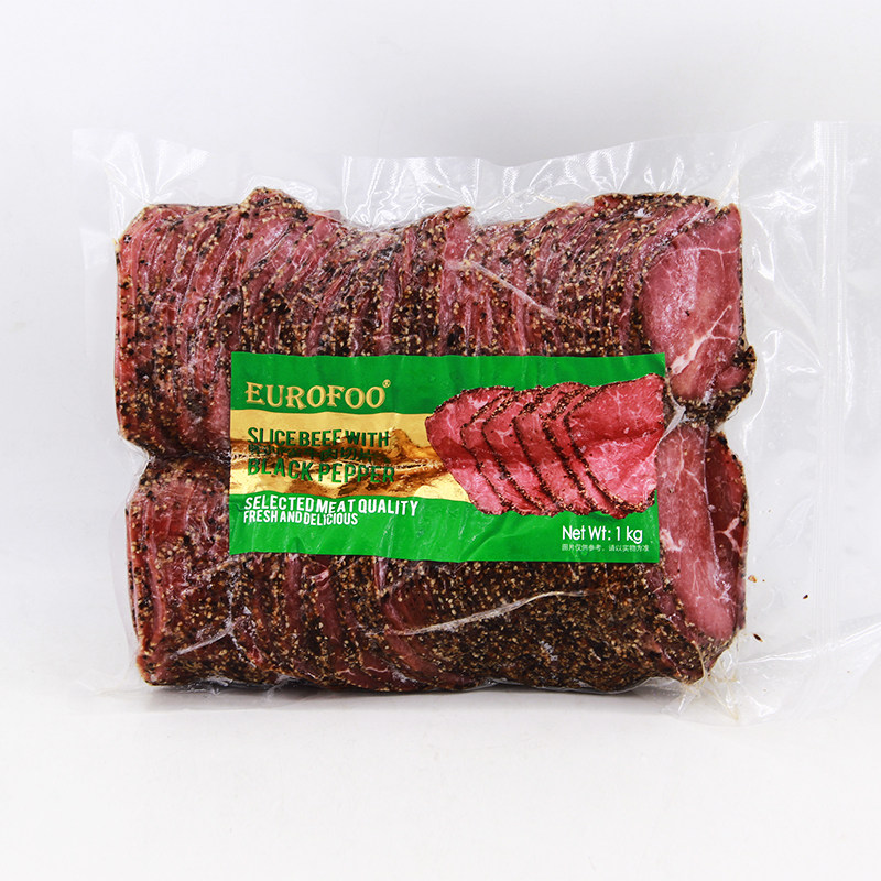 📚 EUROFOO帕斯雀牛肉切片1kg黑胡椒牛肉片健身即食轻食西餐商用整箱